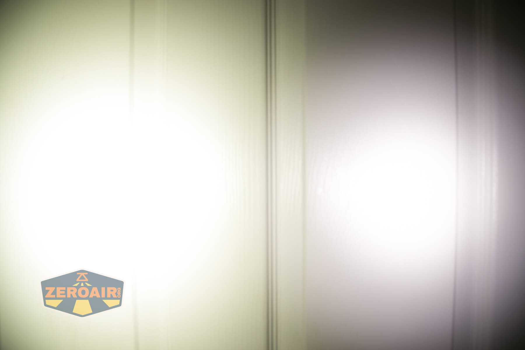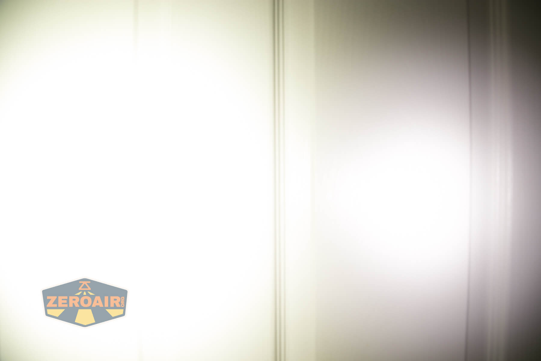 Here’s the test light with the venerable Convoy S2+. Mine’s a custom “baked” edition Nichia 219b triple. A very nice 18650 light.