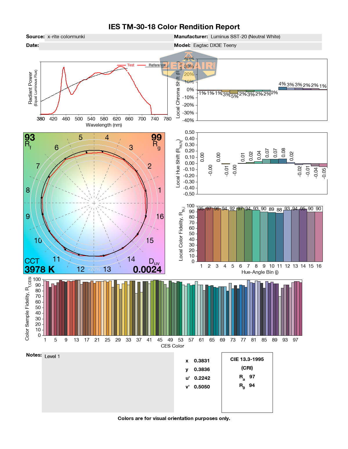 LED Color Report (CRI and CCT)