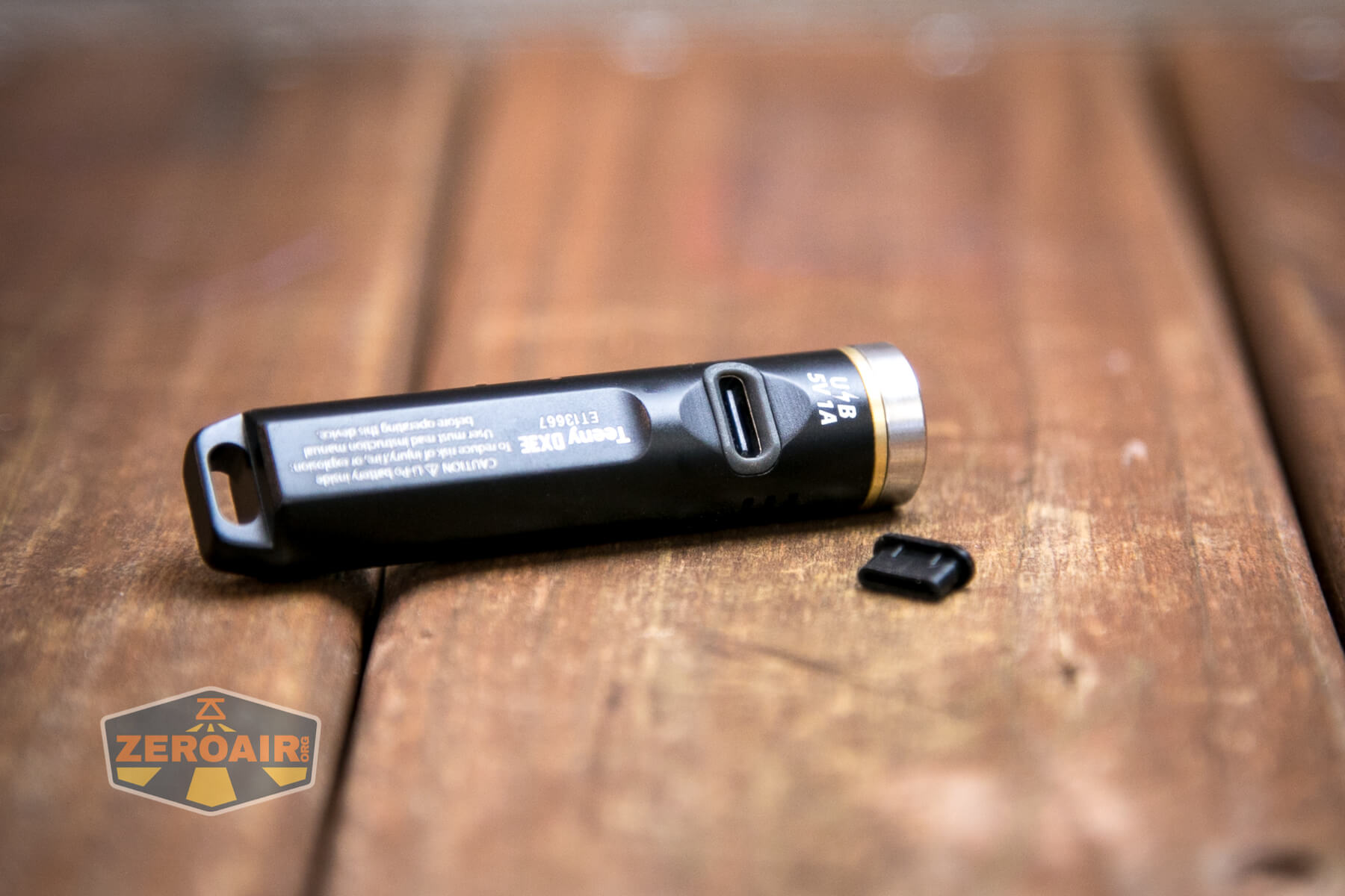 Charging happens via this USB-C port on the side of the body. This port is reported as IPX6 waterproof. That charge port cover is not attached to the flashlight at all. So keep up with it, or trust that the charge port is actually IPX6 waterproof (do not submerge!)