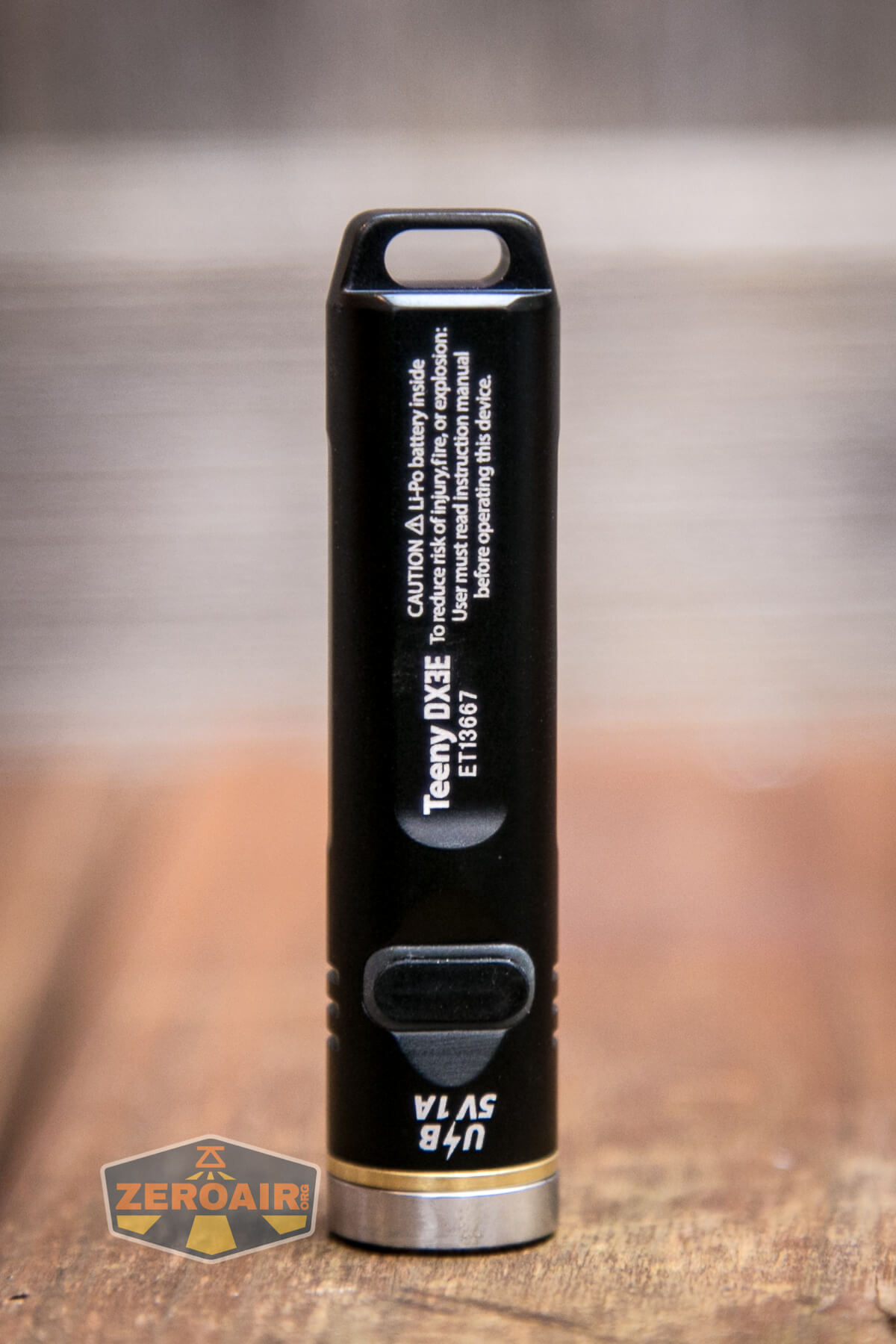 A single switch controls the Eagtac Teeny DX3E flashlight. It’s an e-switch on the side of the head, opposite the USB-C charging port.