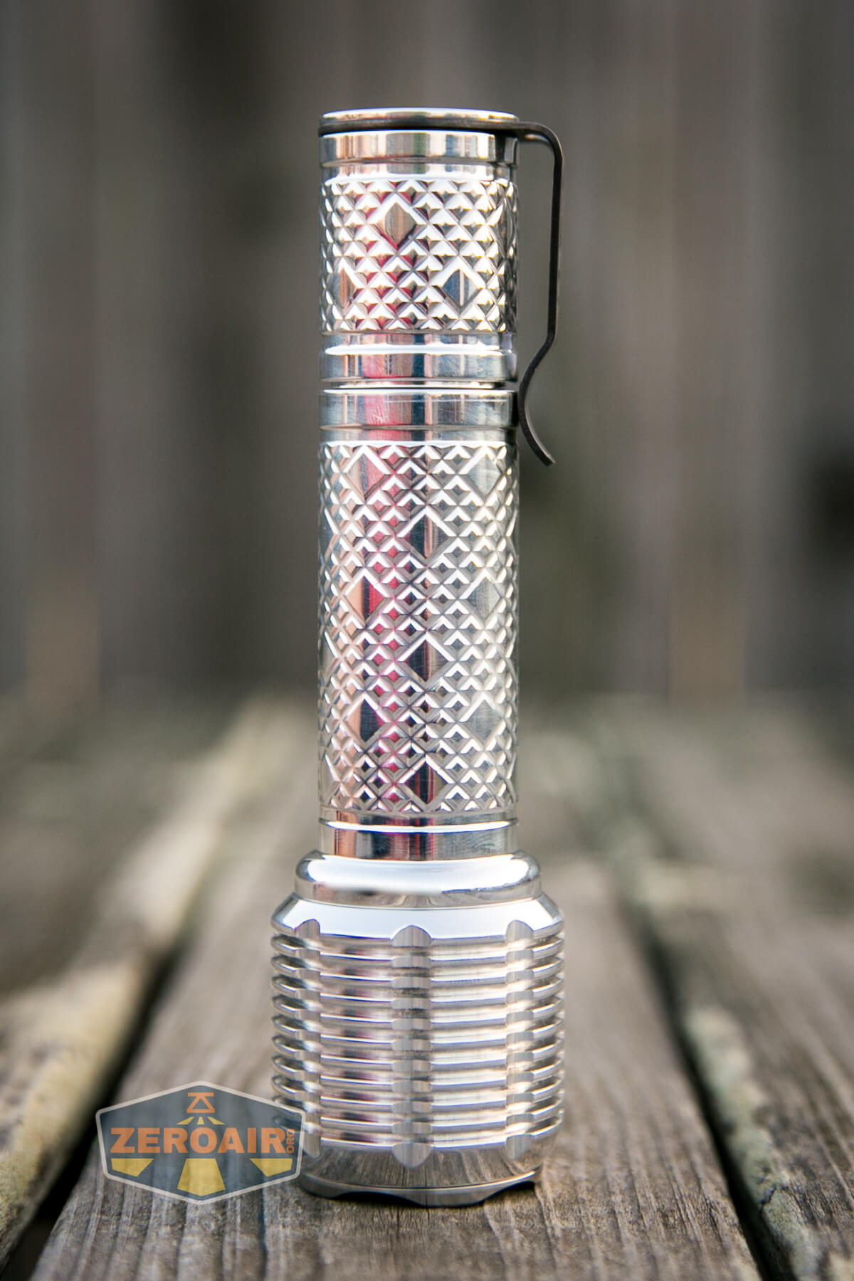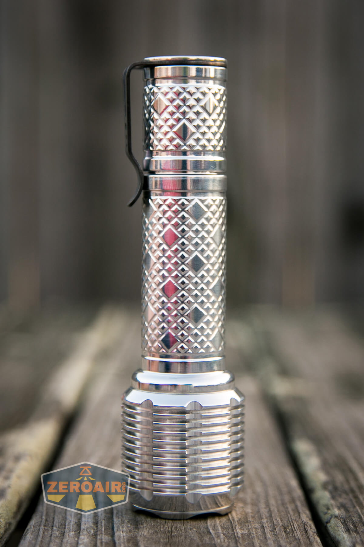 If the flashlight will headstand, I’ll show it here (usually the third photo). If the flashlight will tailstand, I’ll show that here, too (usually the fourth photo).