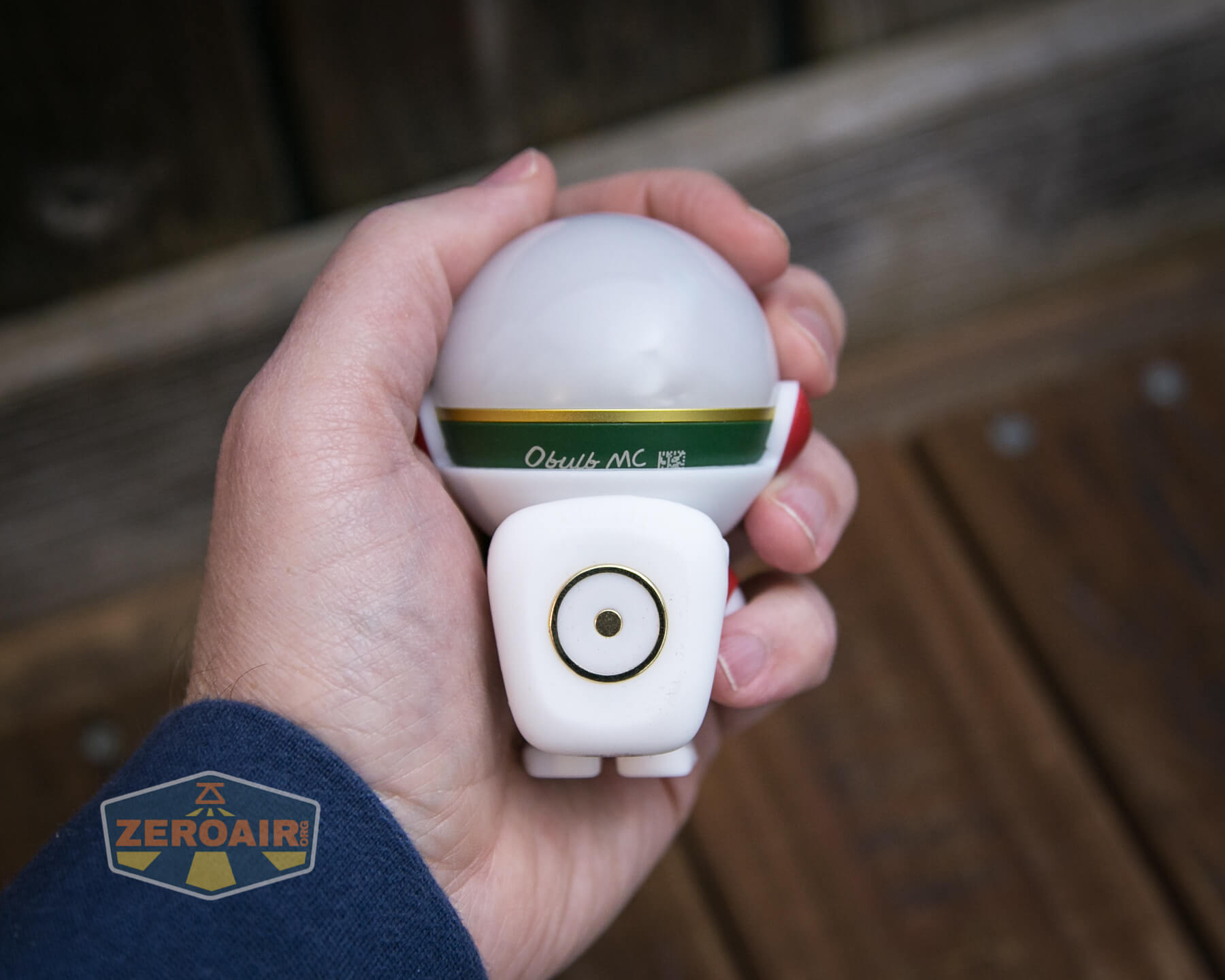But no, this thing cleverly has a sticky back and can be stuck somewhere… Couple that with the magnet base of the Olight Obulb MC Christmas Pack Lantern, and you have a “stick anywhere” (once) base for placing the lantern! I find that to be exceptionally clever.