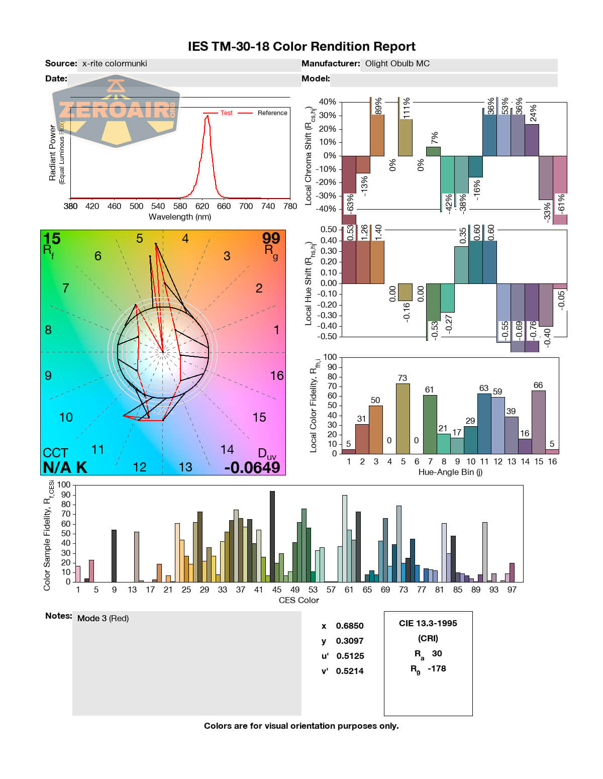 My spectrometer didn’t know how to report the Green and Blue, so I made those two reports in a more manual way. I’m extremely pleased that the white mode is around 2500K. It’s …. super perfect. I could not be happier with that emitter. CRI is 86, too, so not even all that bad.