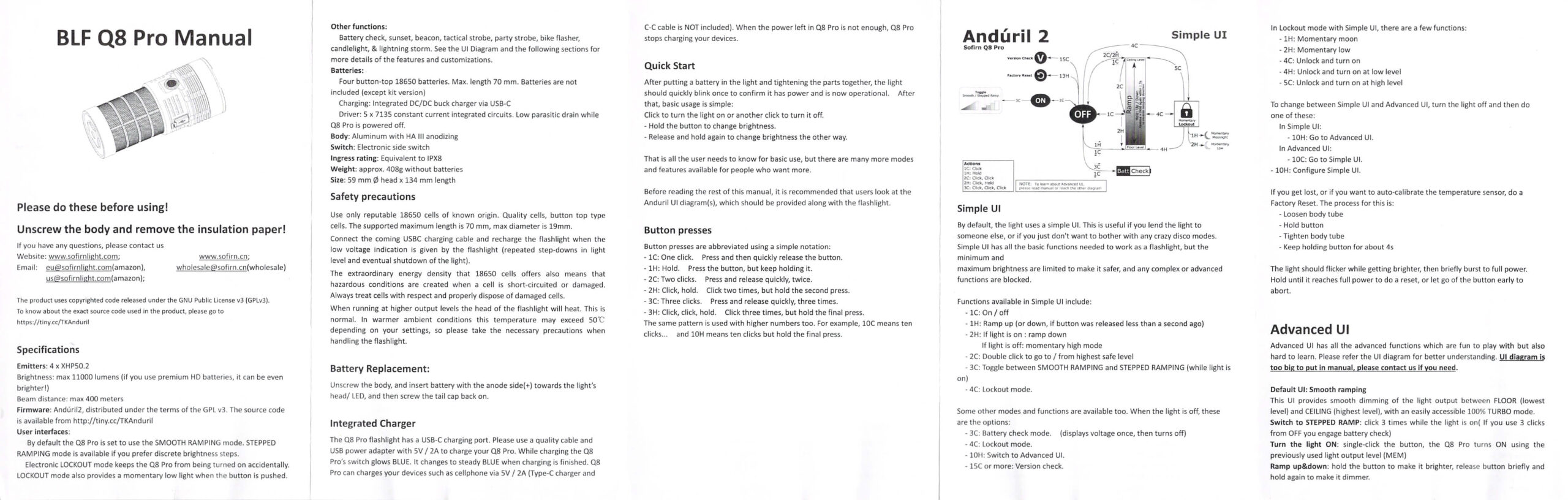 You may have read into what I wrote above and already considered this, but one cell will also work just fine in the Q8 Pro! You’ll be driving a single cell quite hard doing this, and maybe I’d recommend avoiding Turbo, but the light will certainly work absolutely fine on lower modes this way. (Any number of cells will work fine, too!)