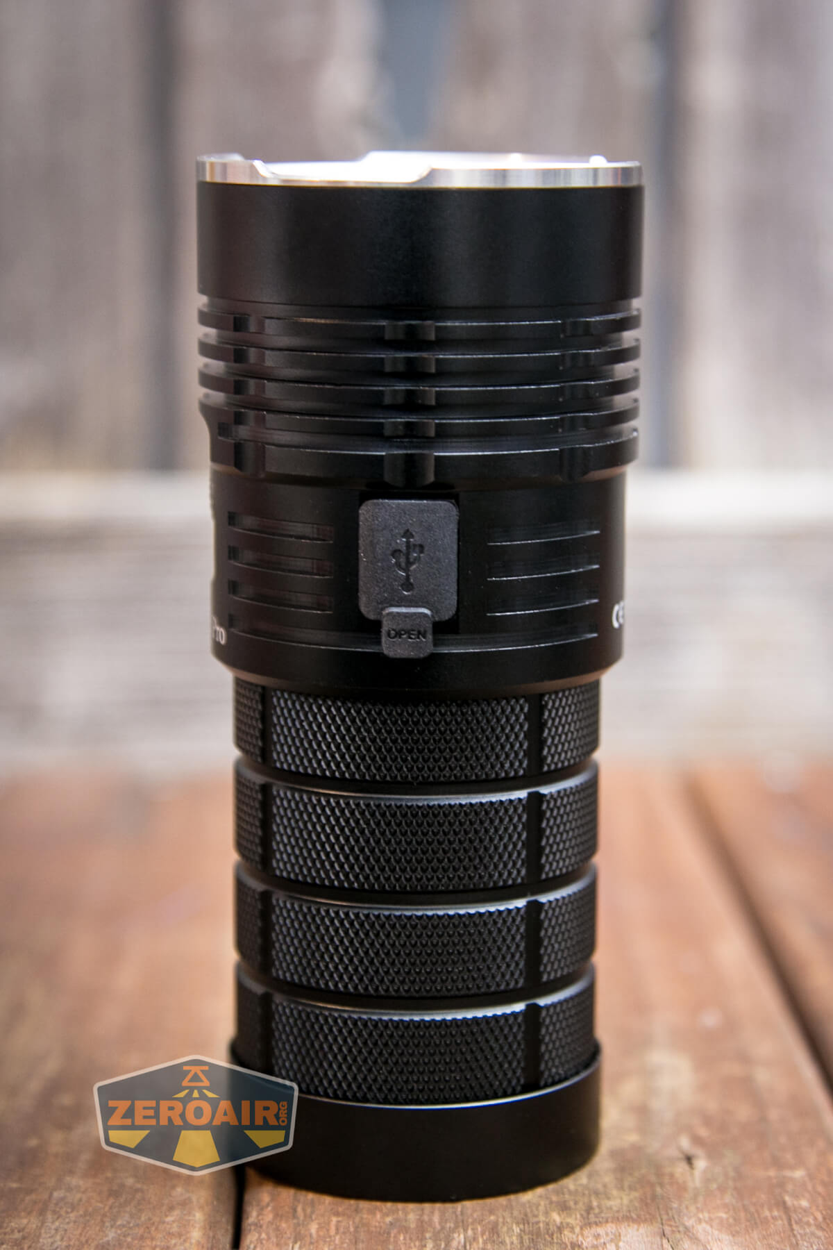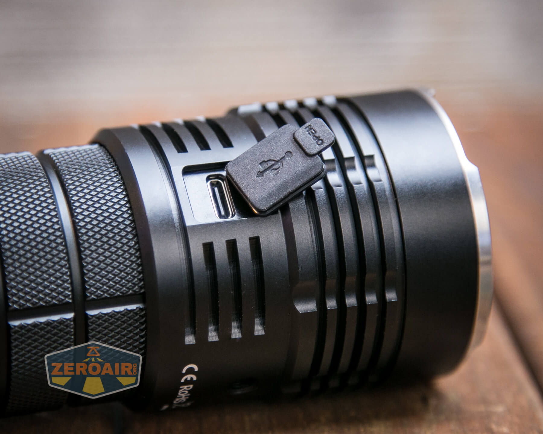 An update to the Pro version of the Q8. The charge port is on the head near the switch. Sofirn used a USB-C charge port, and the cover is a simple press-in silicone cover.