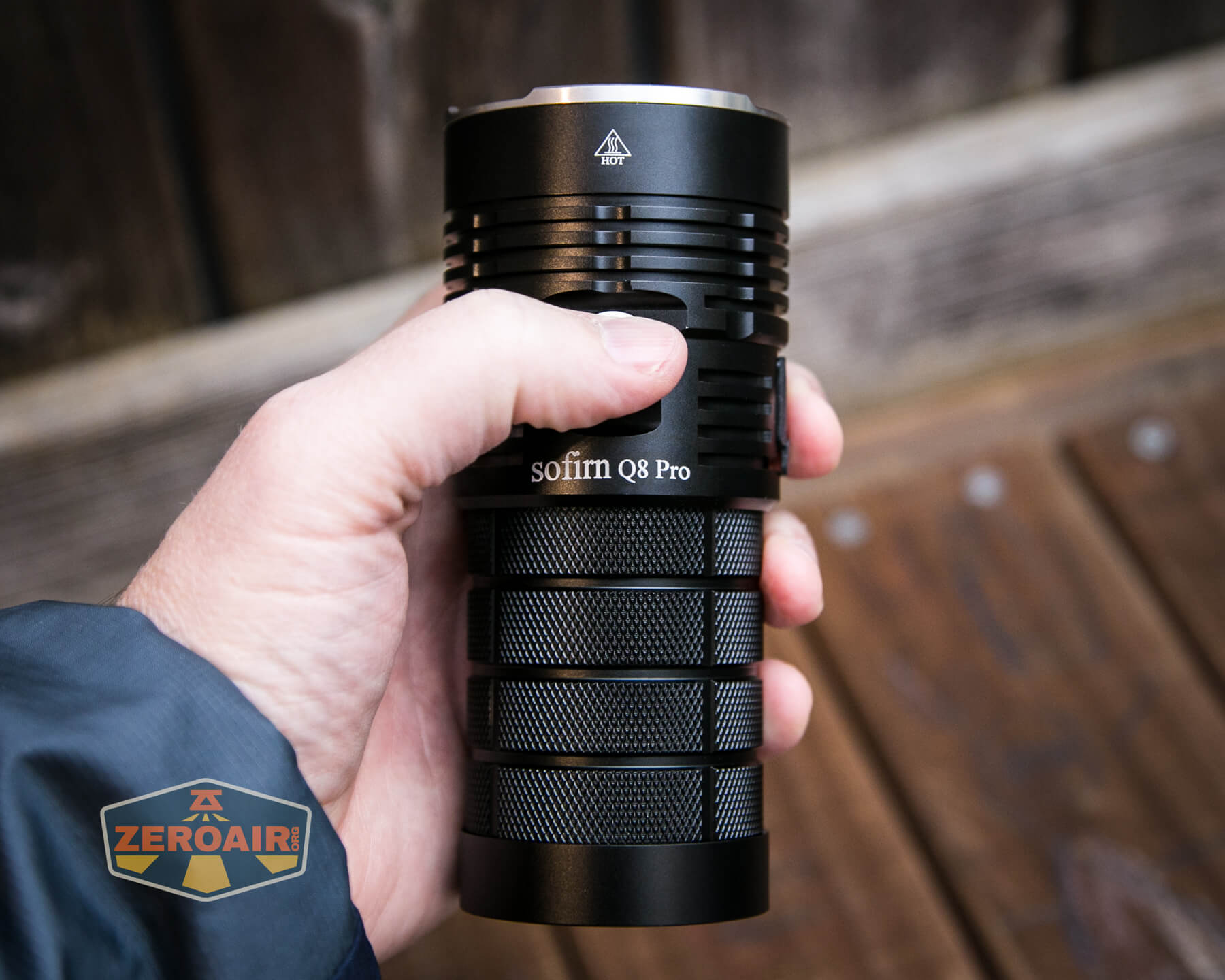 The Sofirn Q8 Pro flashlight uses four 18650 cells and has four Cree XHP50.2 emitters. The e-switch has an indicating feature, too! Read on!
