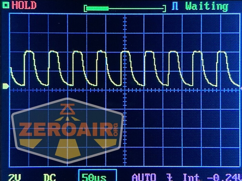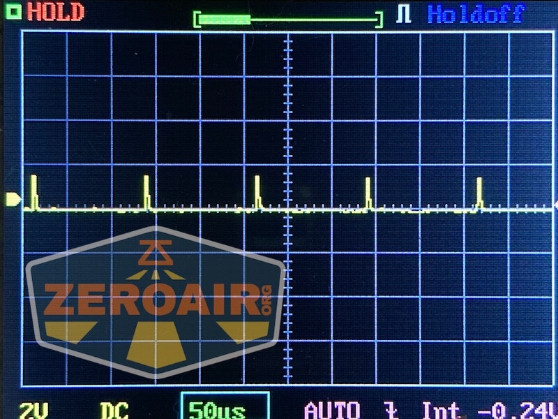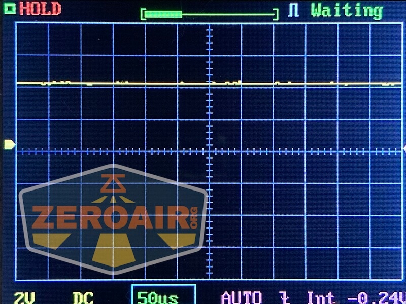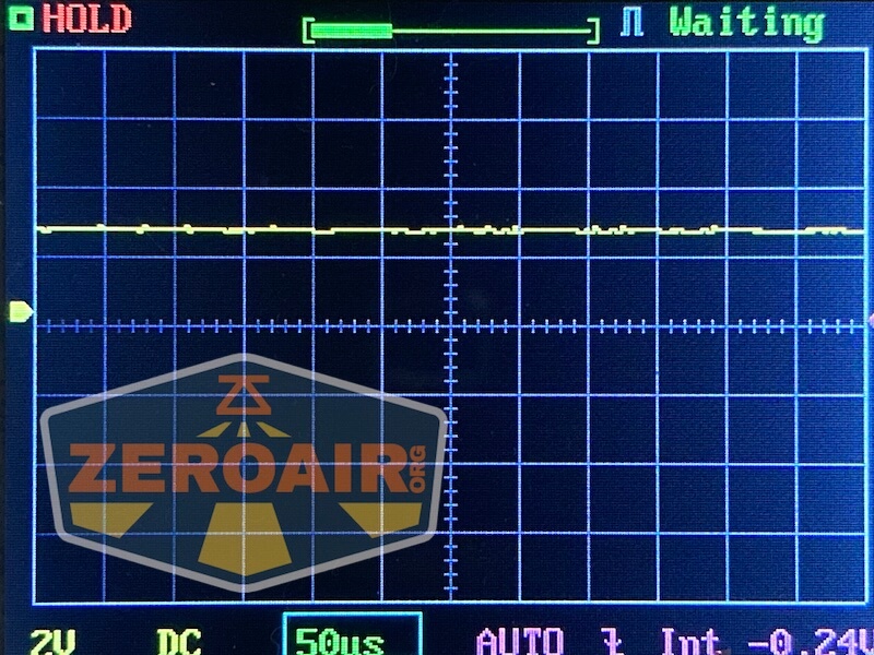 In case you want to see what happens when the output shuts off, you can see that below. I manually forced the output to go back on, and it’ll shut off pretty quickly after that. It will not output 3A, but it’ll also not output any current – it seems properly shut off.