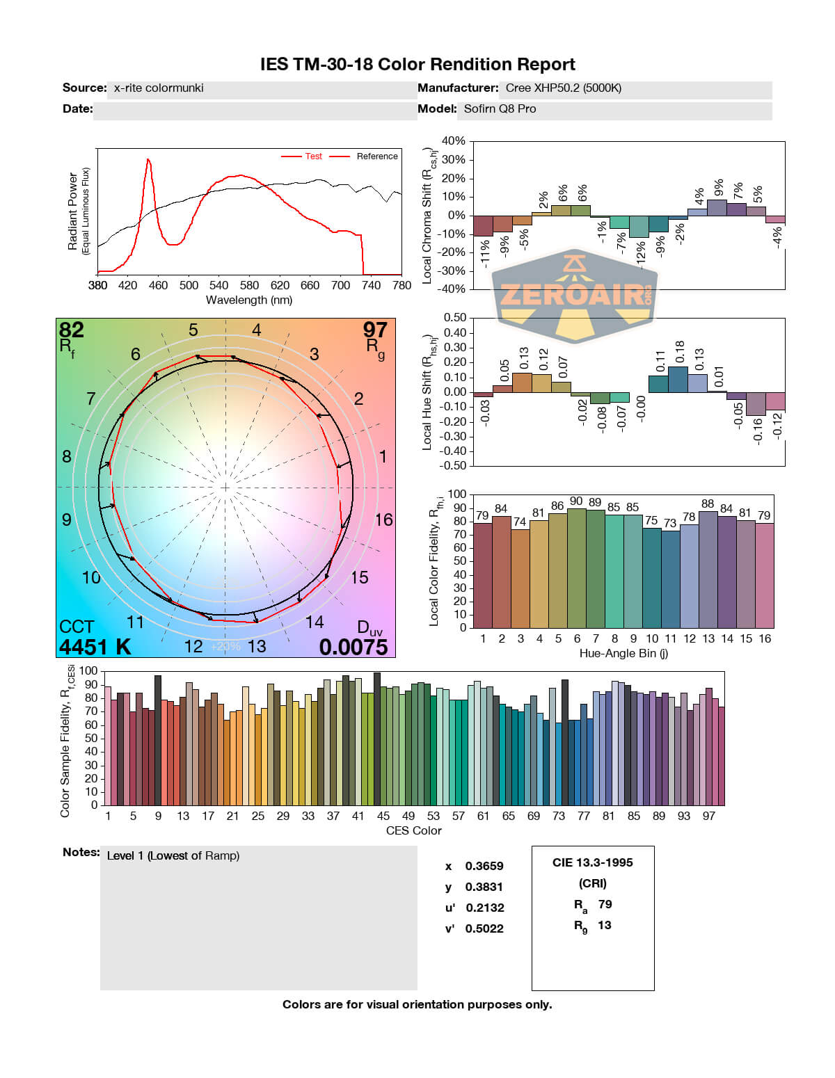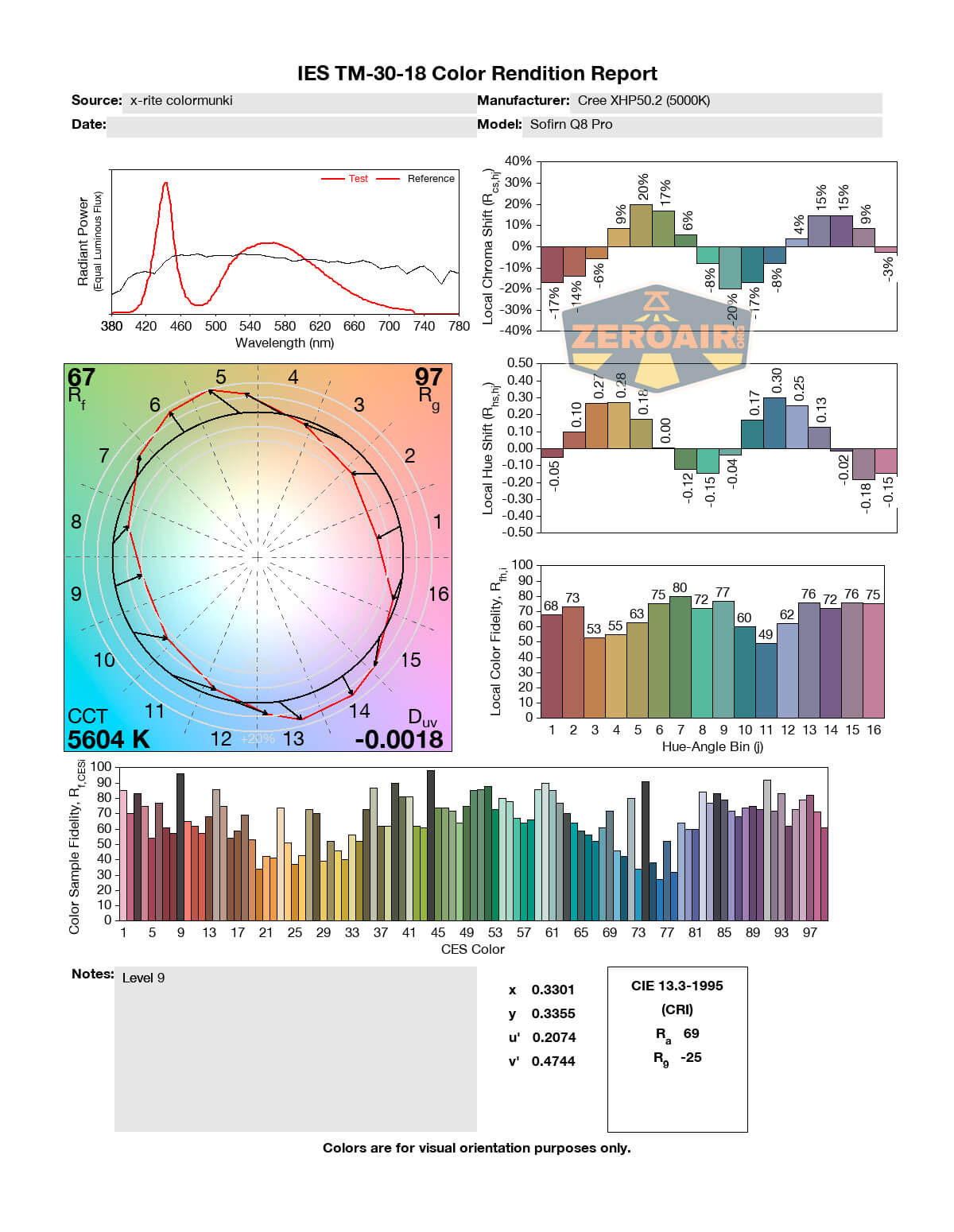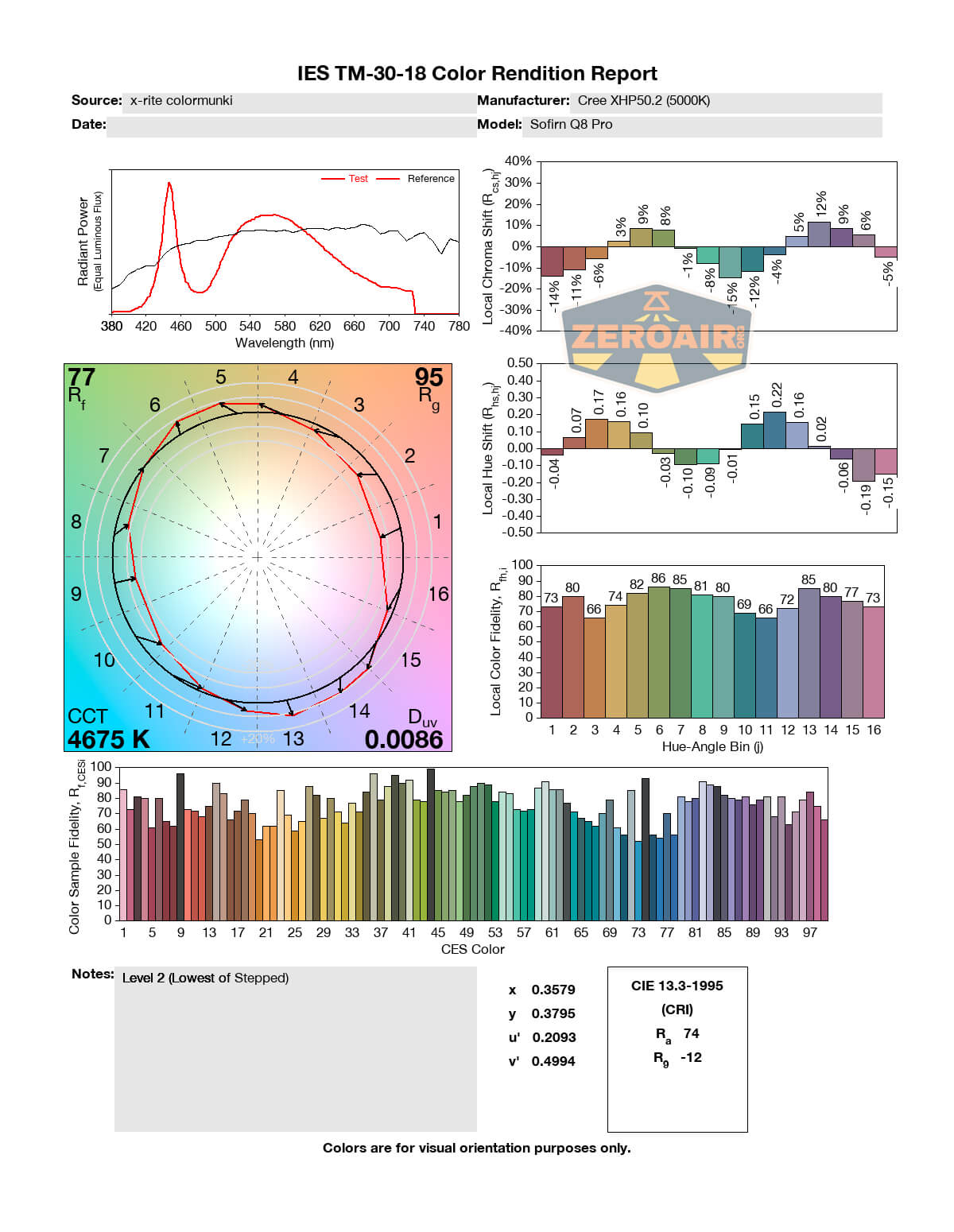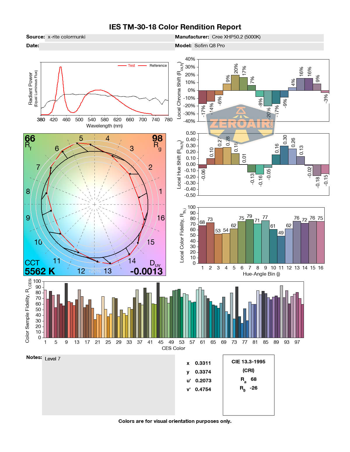 While we do see the CCT creep up as the output increases (which we expect), it’s still well under 6500K (at a max of around 5500K). This is good (and acceptable!)