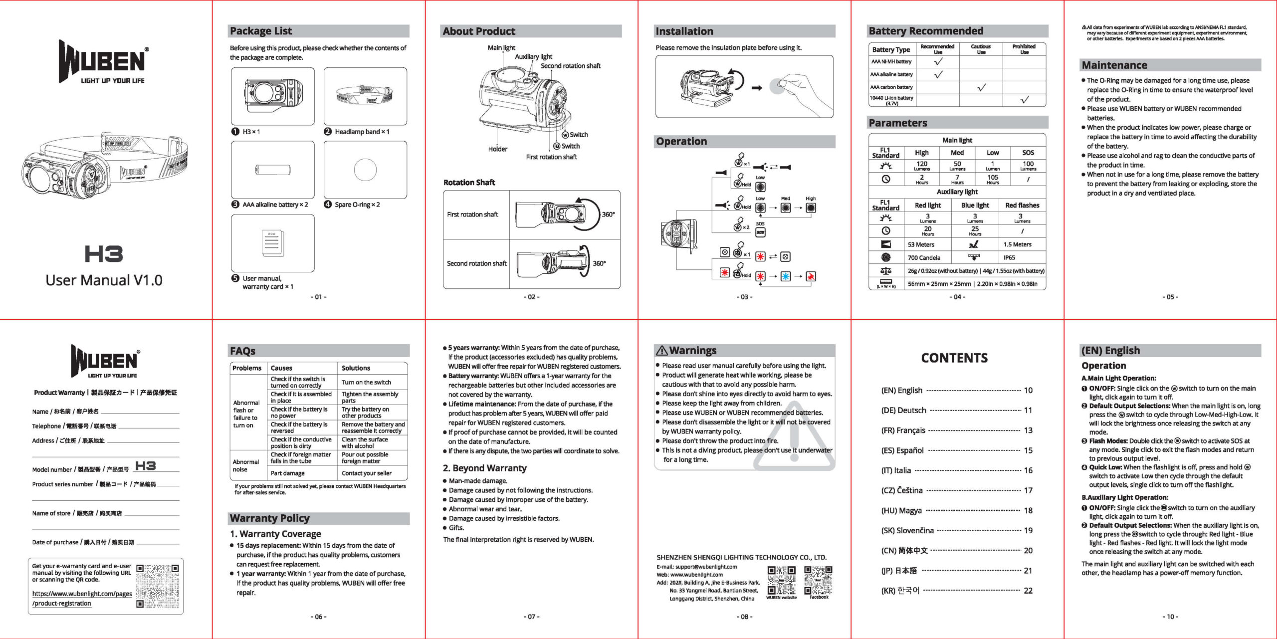 Wuben includes the necessary power supply for the H3. That is two AAA-sized cells. The ones that are included are primary cells.