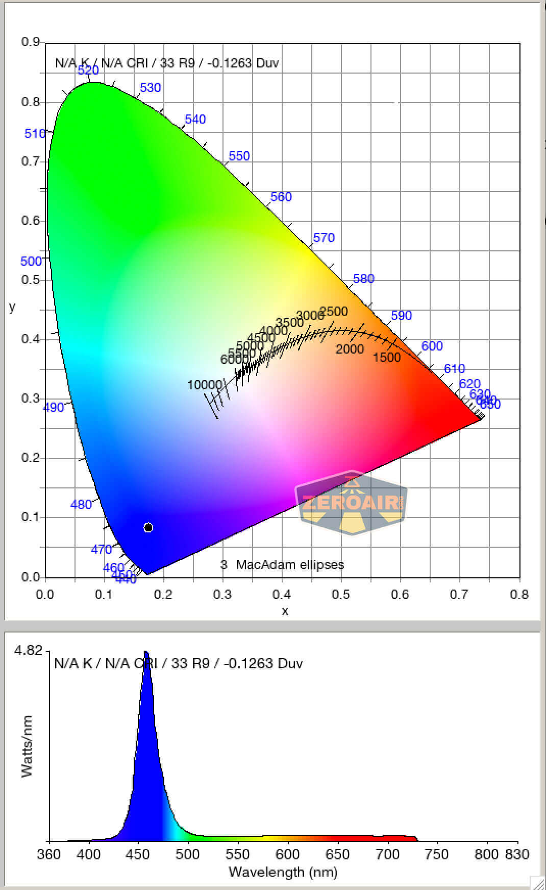 The CCT and CRI report for this Osram P8 are probably about what I’d expect. We see around 6000K, and a CRI of around 70. That means the CCT is a bit high, and the CRI is a bit low. If we had a high CRI warm emitter in this light, I might say this is about perfect.