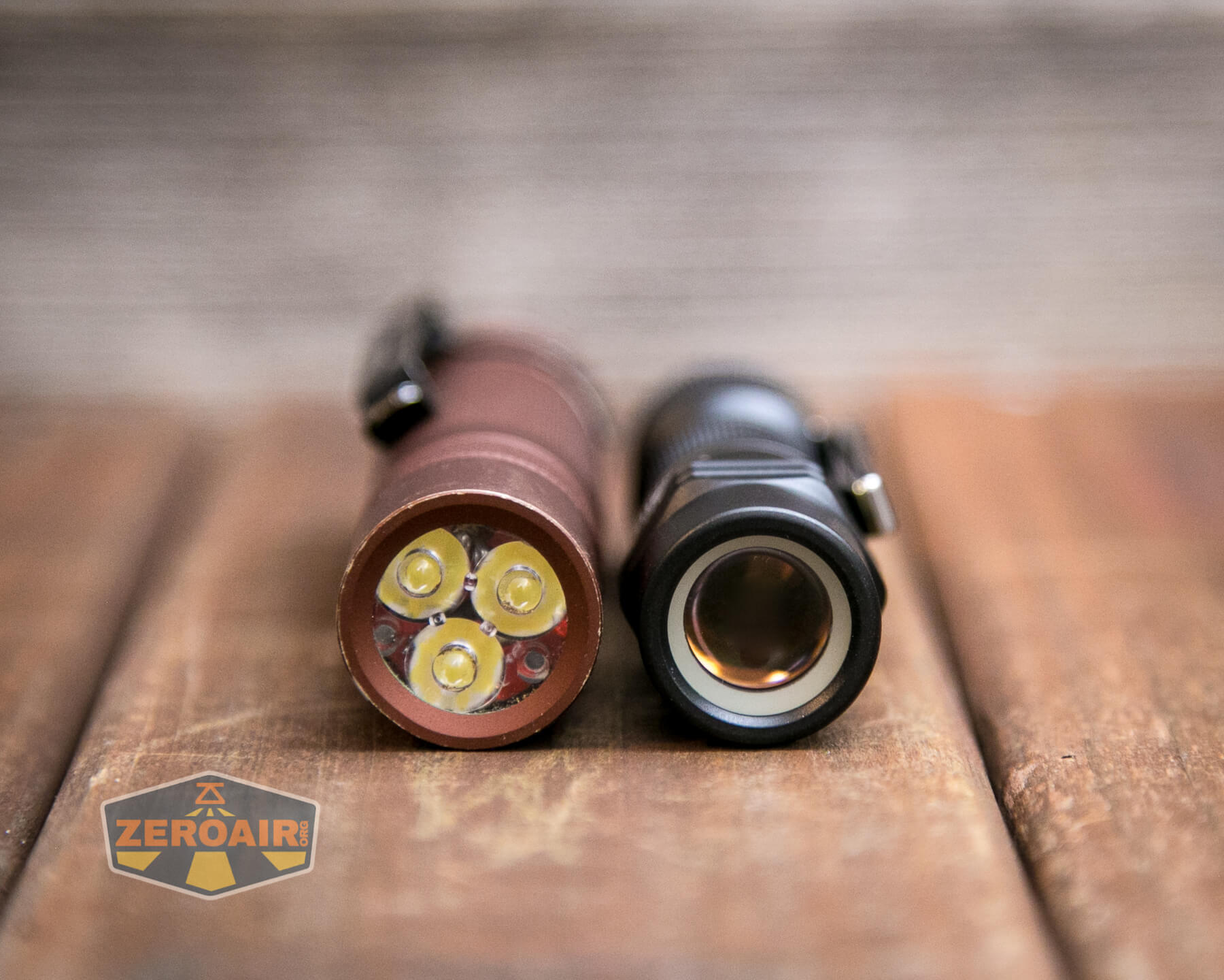 And here’s the light beside my custom-engraved TorchLAB BOSS 35, an 18350 light. I reviewed the aluminum version of that light in both 35 and 70 formats.