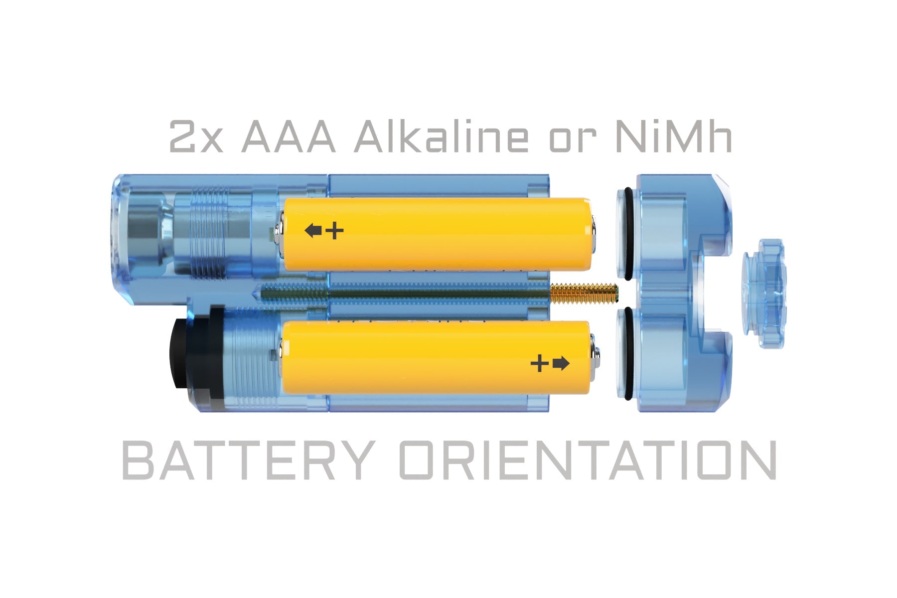 I was sure I had a photo showing the plus/minus icons very clearly. But the body tube is marked with plus/minus, too. The marking indicates which cell terminal you should be able to see when they’re installed. So the side with the “+” circled, you should be able to look at the positive terminal of that cell.