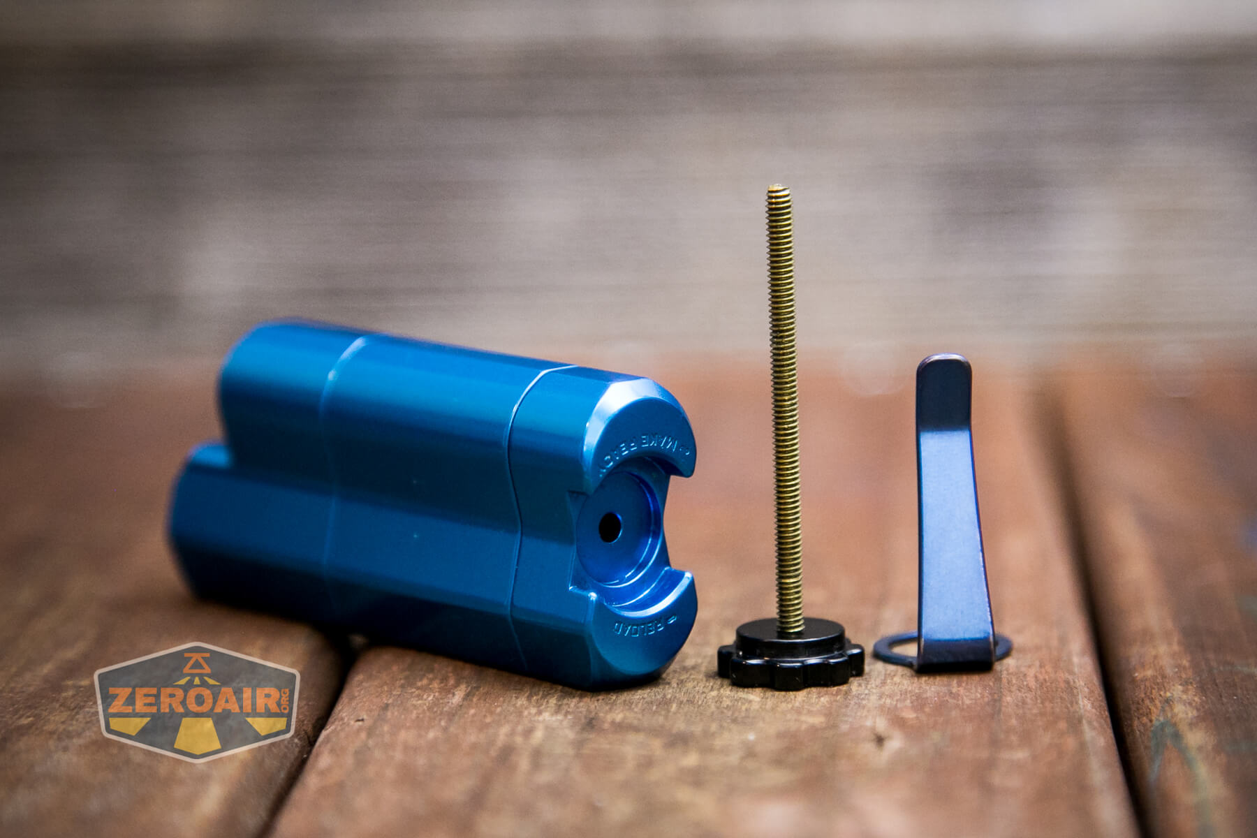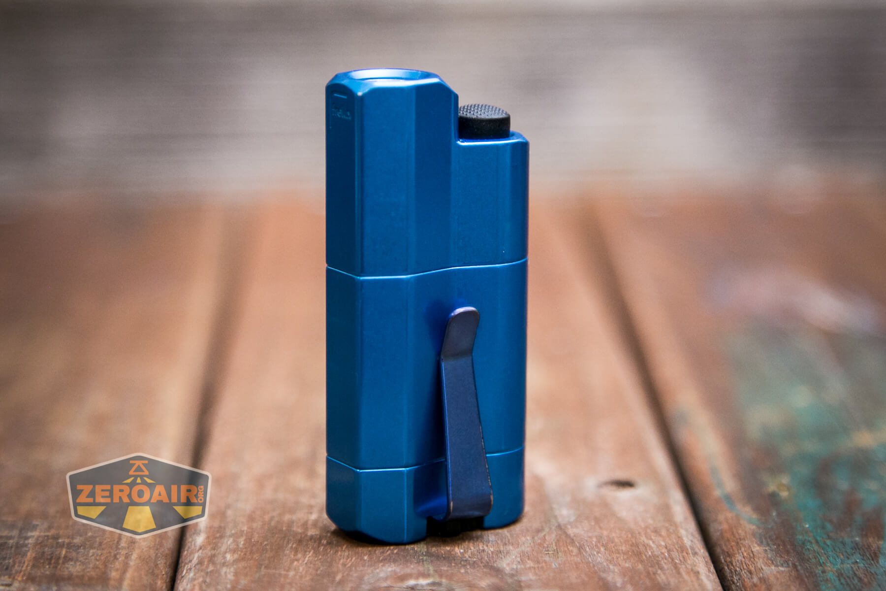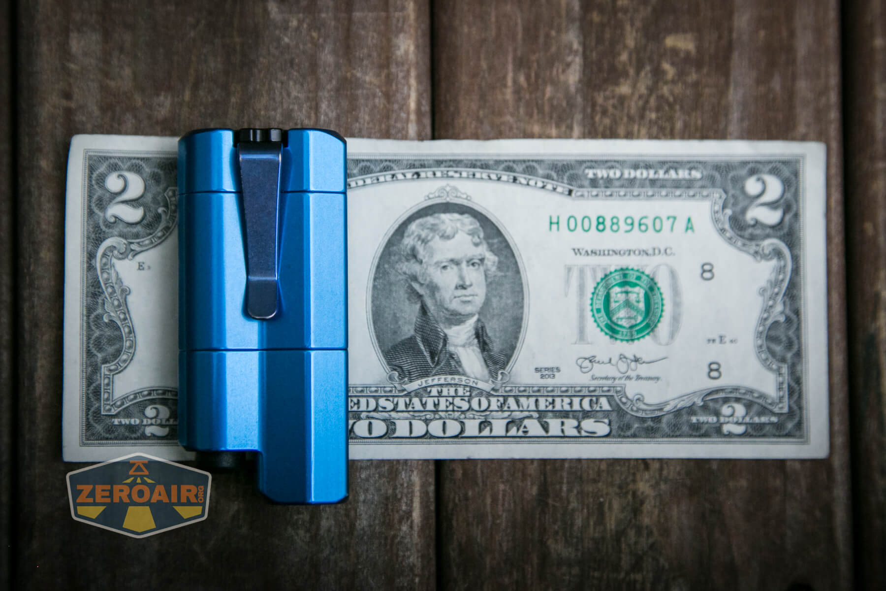 Ah the pocket clip. The pocket clip is really the only included way to carry the Frelux Synergy1 flashlight. Below you can see the clip in blue. There’s also a loop option. This allows connection of a lanyard.