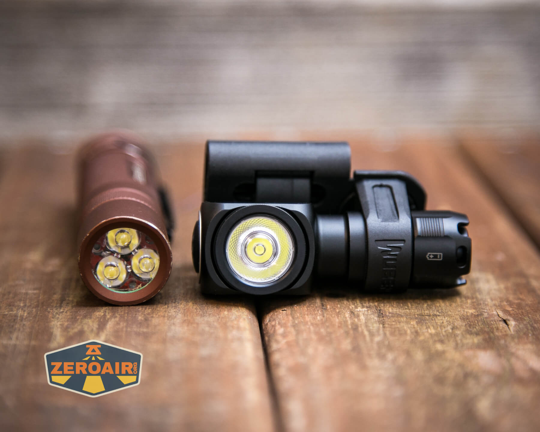 And here’s the light beside my custom-engraved TorchLAB BOSS 35, an 18350 light. I reviewed the aluminum version of that light in both 35 and 70 formats.