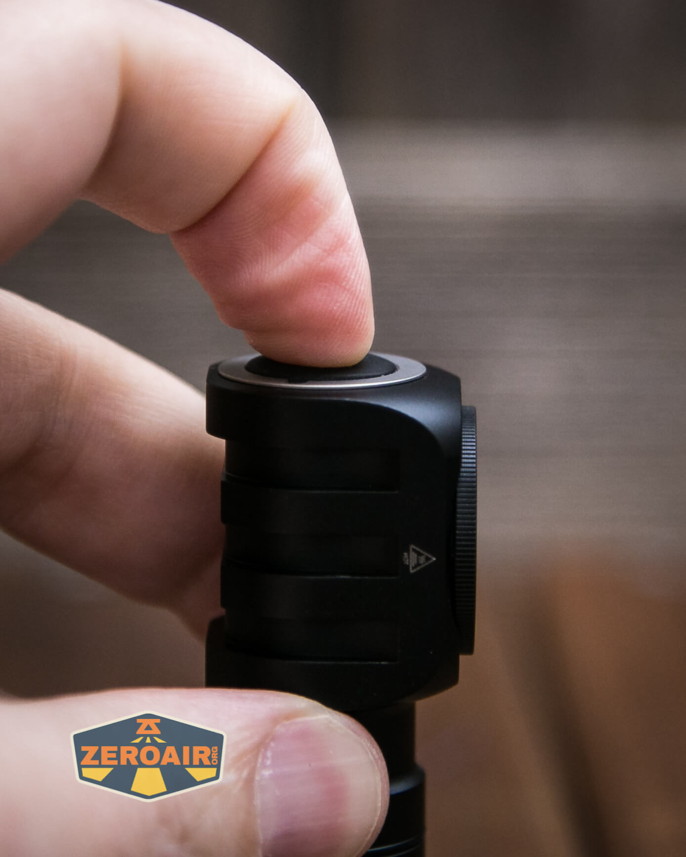 A single e-switch controls the whole operation of the Wuben H5. That switch is on the “top” of the H5 (or either side, depending on how you have the light set up in the headband).