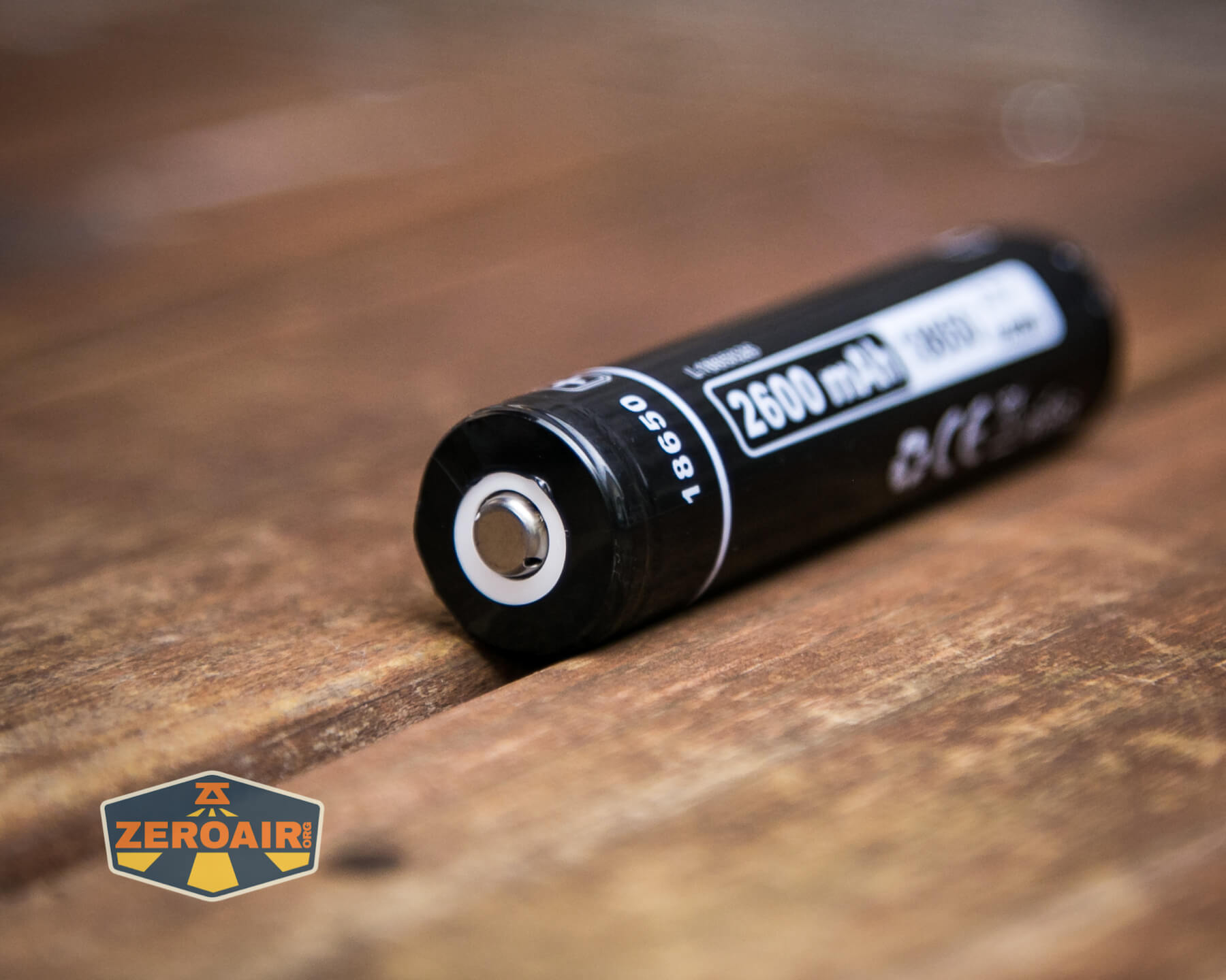 The Mijomi J81 flashlight is powered by a single 18650 lithium-ion cell. This 2600mAh button top is included.
