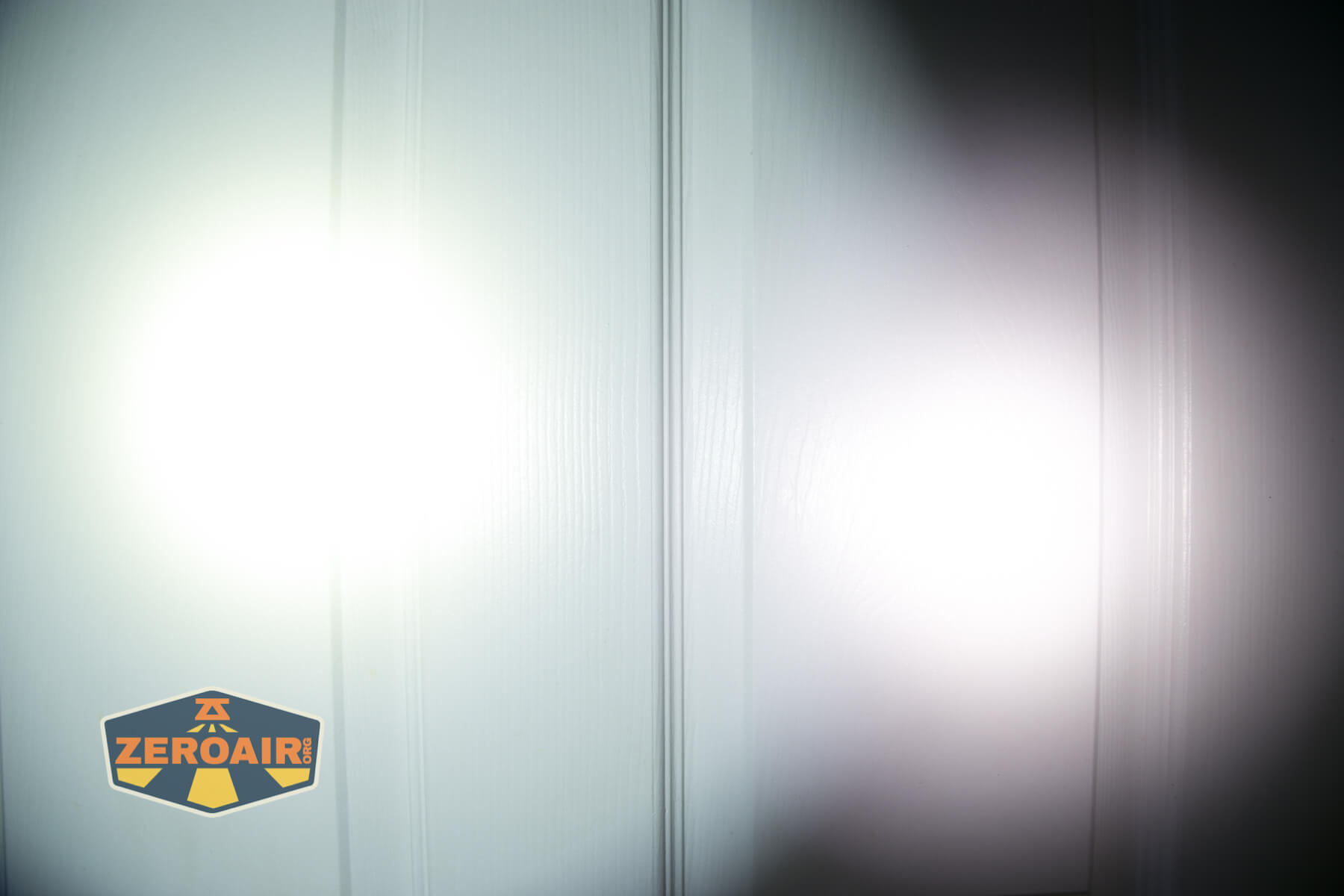 Here’s the test light with the venerable Convoy S2+. Mine is a custom “baked” edition Nichia 219b triple. A very nice 18650 light!