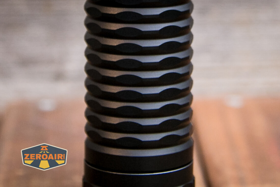 Convoy here uses a grip pattern in the cell tube that I don’t think we’ve seen before. On this large light (with the 26mm diameter cell) the pattern is great! It’d probably be great on smaller lights, too.