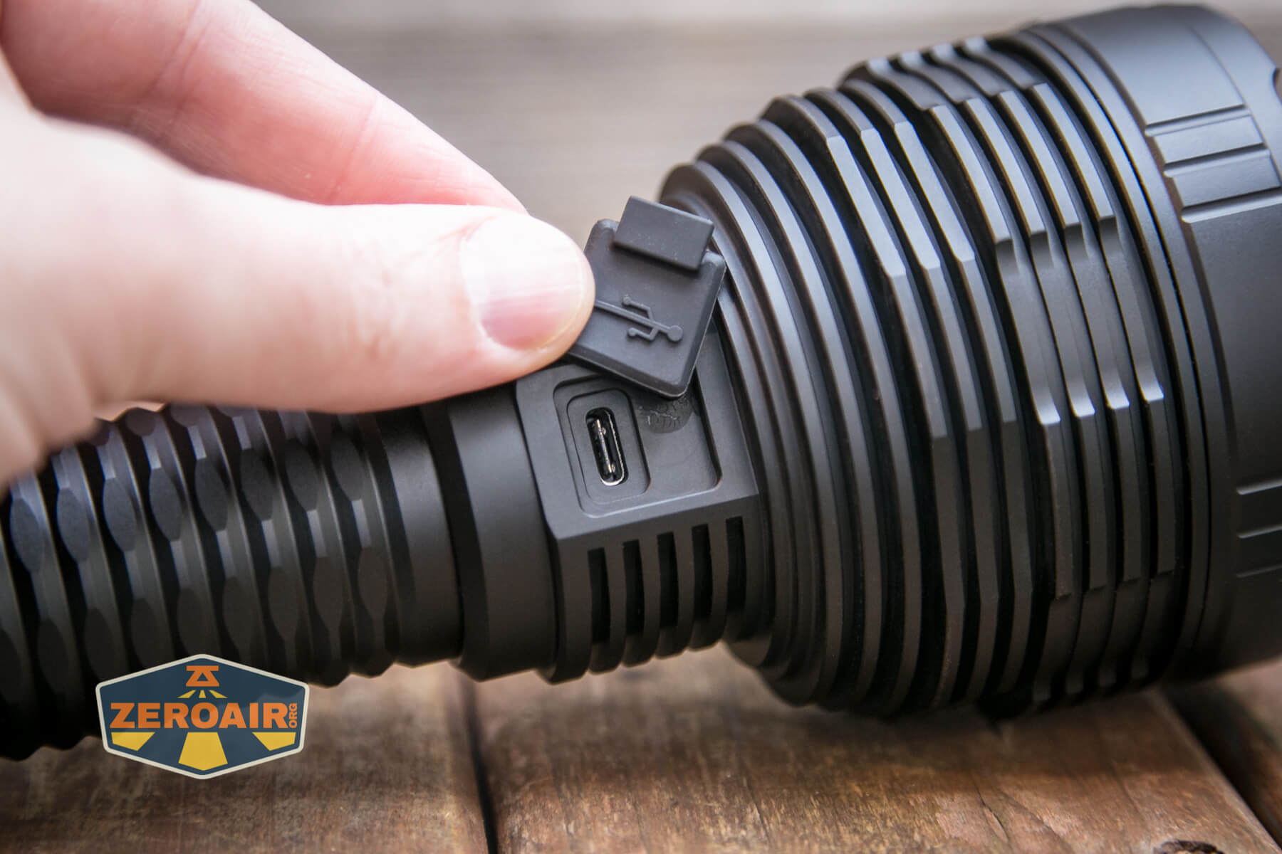 The Convoy L8 includes built-in charging, too. There’s a USB-C port in the head, opposite to the switch.