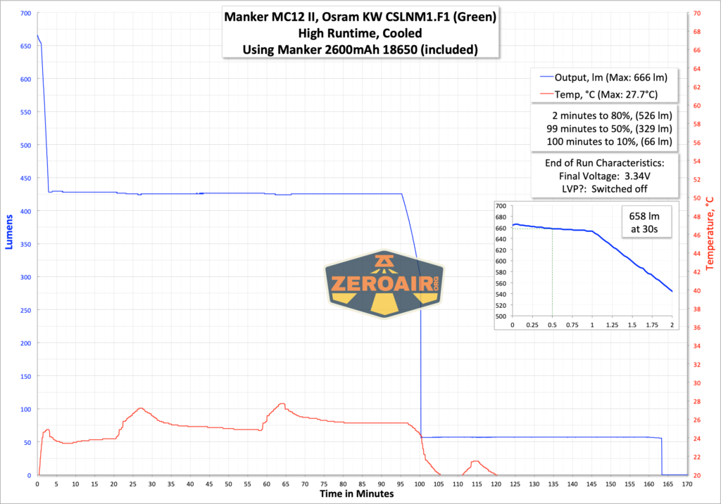 Manker has released the MC12 II, a tactical flashlight. Mine has green output and a simple High/Low output selection. Read on for testing!