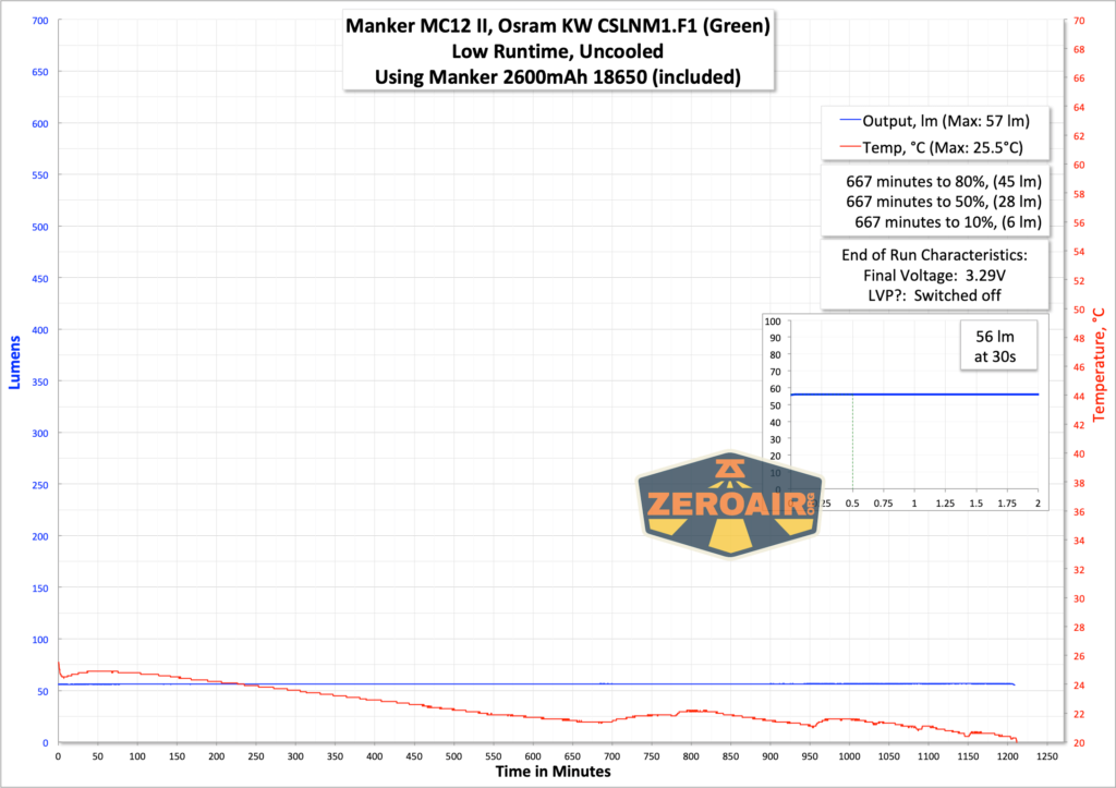 Measured Lumens (at 30s) – (My setup isn’t calibrated for green!)