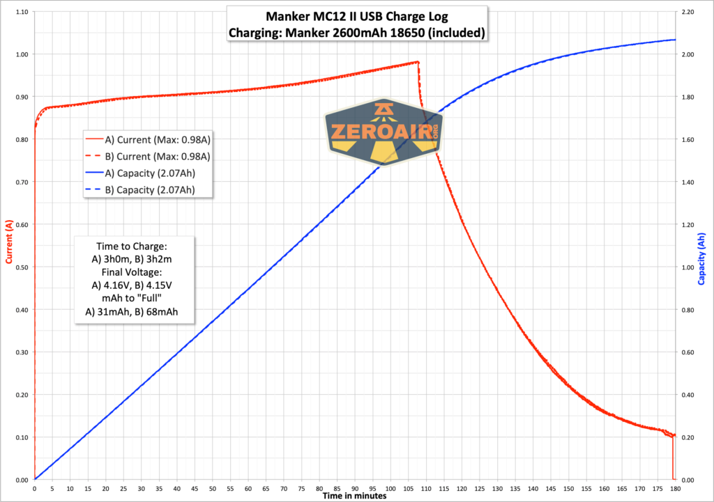 While the Manker MC12 II tactical flashlight doesn’t have built-in charging, the included cel does.  That’s by way of a USB-C port.