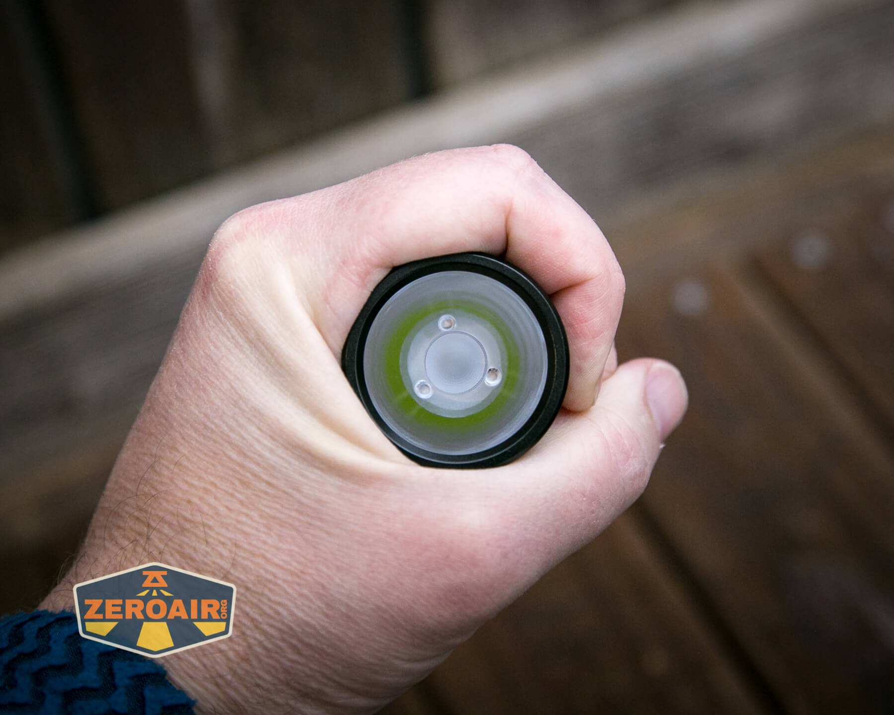In this copy of the Manker MC12 II tactical flashlight is an OSRAM KW CSLNM1.F1 LED – Green Light.  That green emitter is coupled with a TIR made for throw.