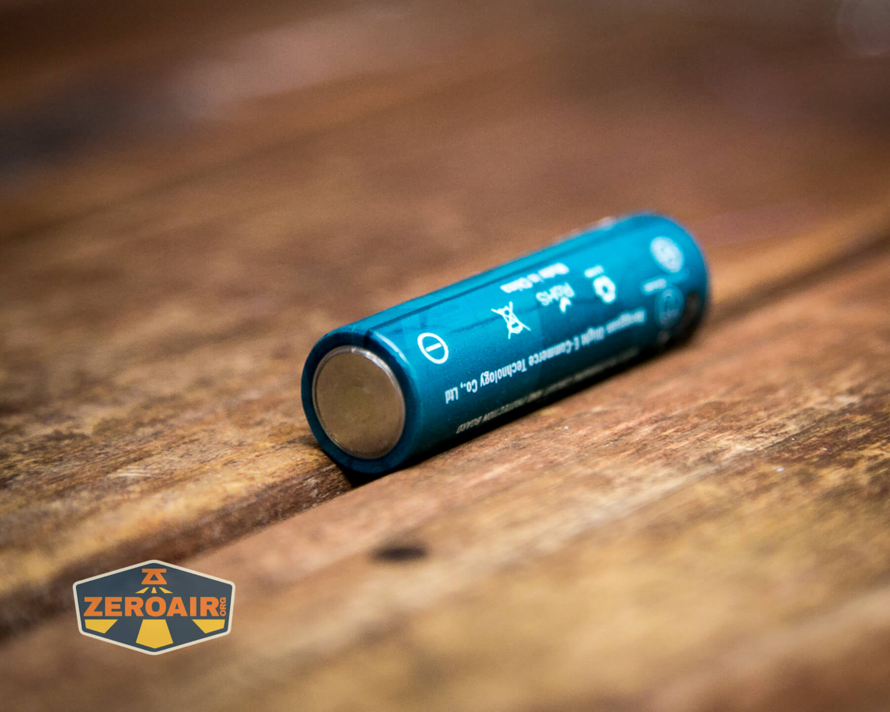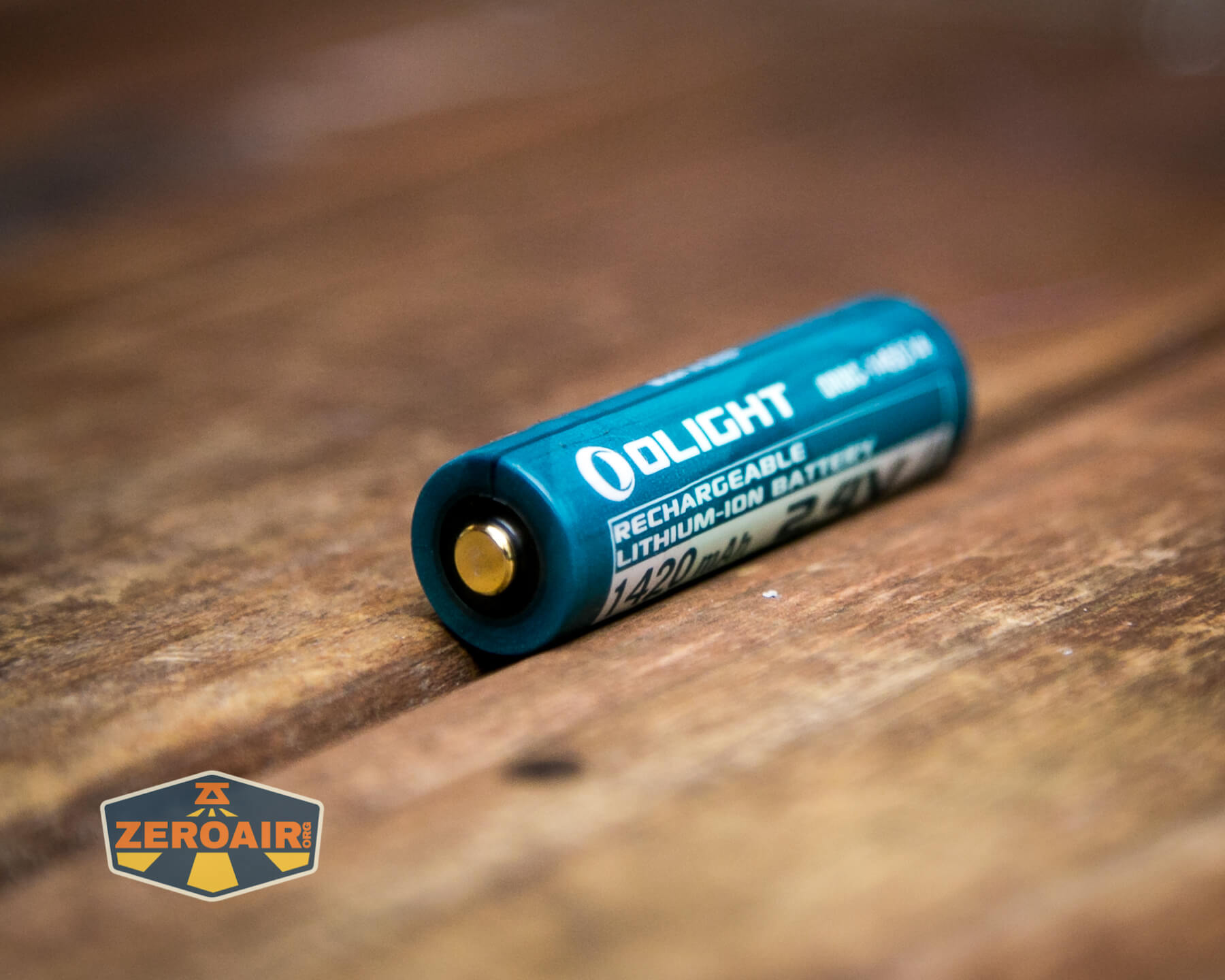 The Olight i5R EOS Plum flashlight runs on the included cell, which I’ve already talked about at length. This is a lithium-ion cell, but not a 14500. Or I’ll call it a 14500 as Olight does, but I’m going to put it in quotes – “14500.” It’s not really a 14500 cell, and saying it is implies that normal (4.2V) 14500 cells will work in the i5R. They might work, but they aren’t recommended or supported (ie they might fry your electronic,s or they might be fine – do you want to risk it is the question.)