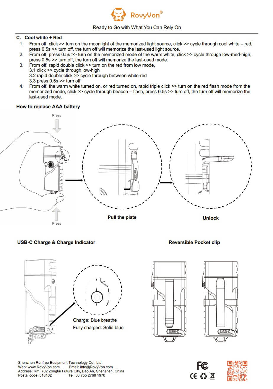 There are two power sources for the RovyVon Angel Eyes E3 flashlight. First is an internal LiPo battery. As with many RovyVon flashlights, this battery is not user-serviceable.