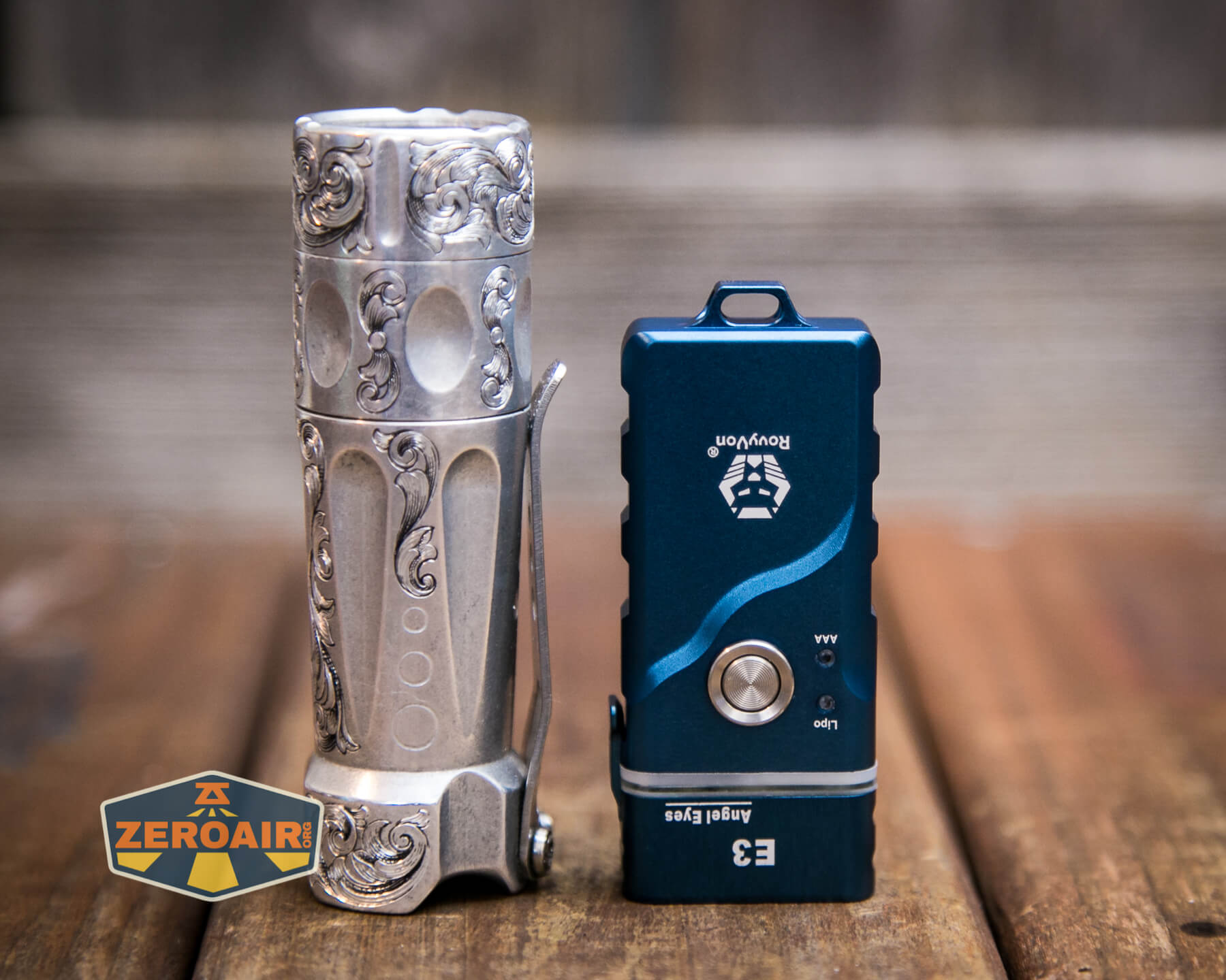 The new RovyVon Angel Eyes E3 flashlight! What a neat little thing. It has a built-in LiPO but also will run a single AAA cell, too! Read on!