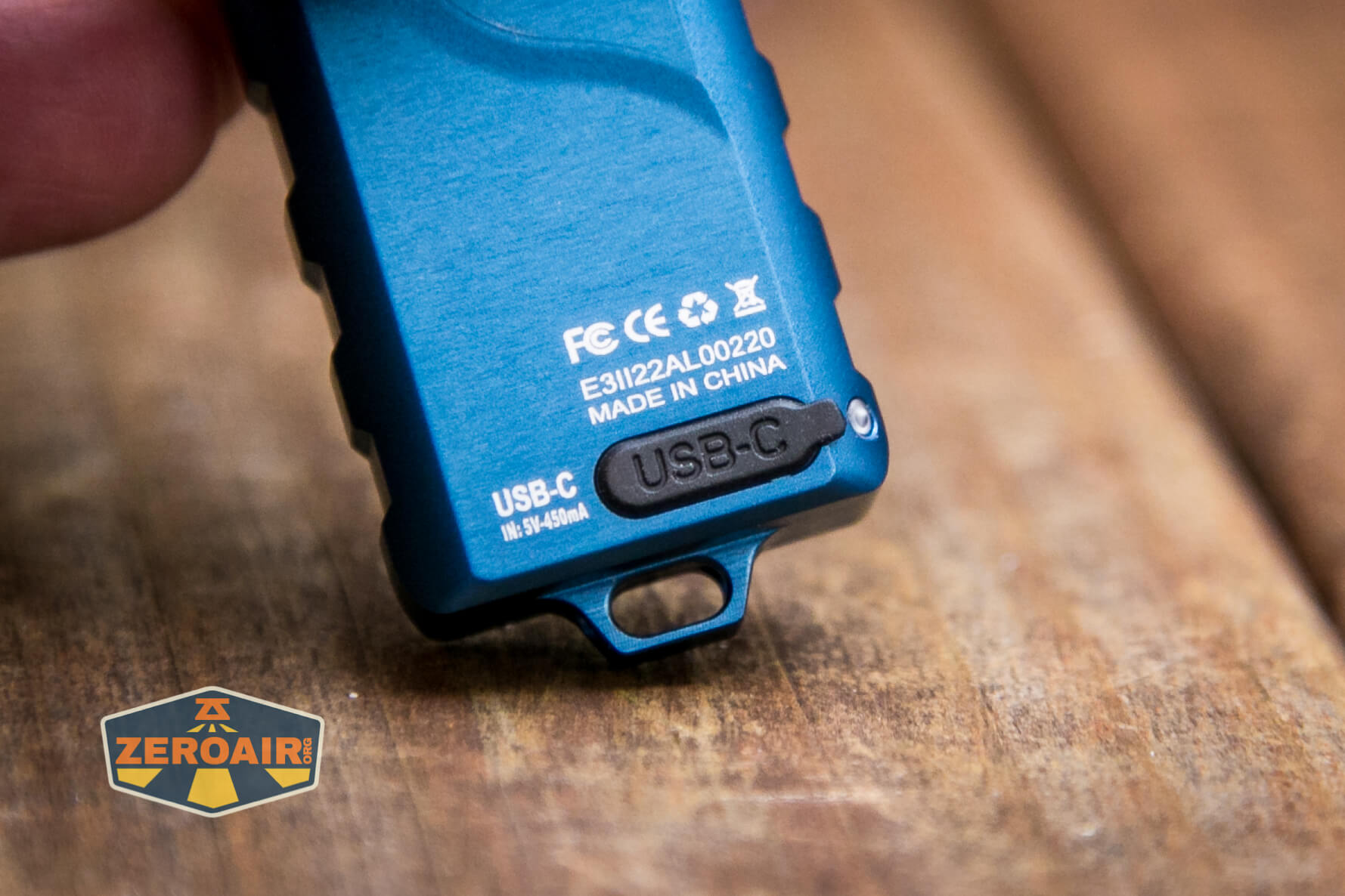 USB-C charging is available on the E3. This charging port is on the bottom and back of the light. The cover presses in and says in place fairly well.