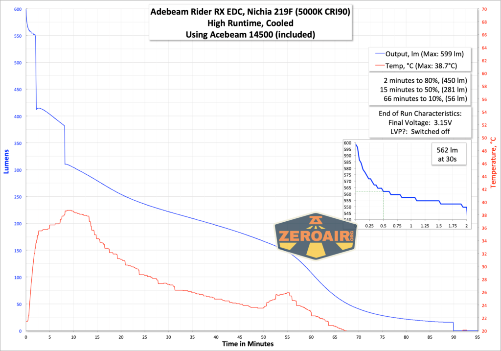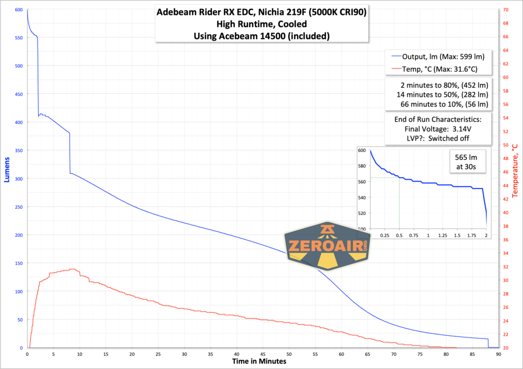 Overall I’d say performance is good, and I really appreciate that the Acebeam Rider RX flashlight runs on both lithium-ion and 1.5V cells.