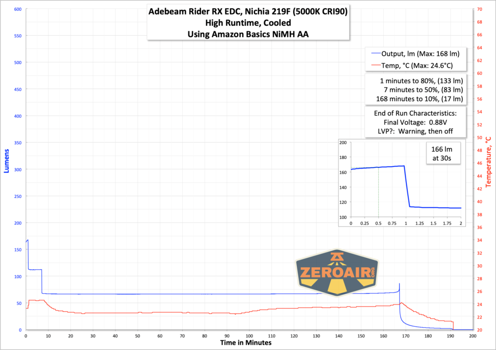 | Measured Lumens (at 30s) | 166 (83% of claim)^ |