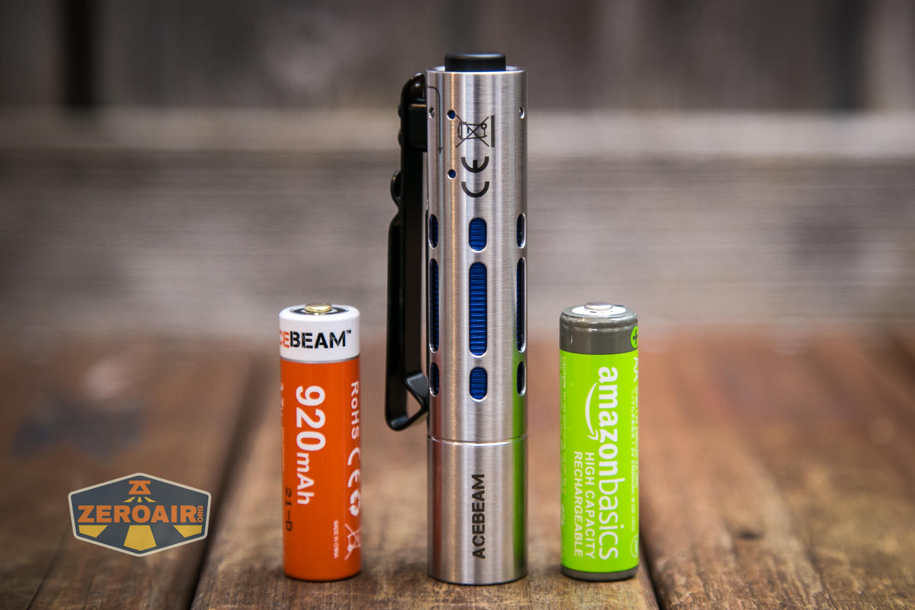 Included with the Acebeam Rider RX flashlight is a lithium-ion 14500 cell. However, the Rider RX will also run on a single AA cell, too (that is, a 1.5V cell – primary or NiMH.)