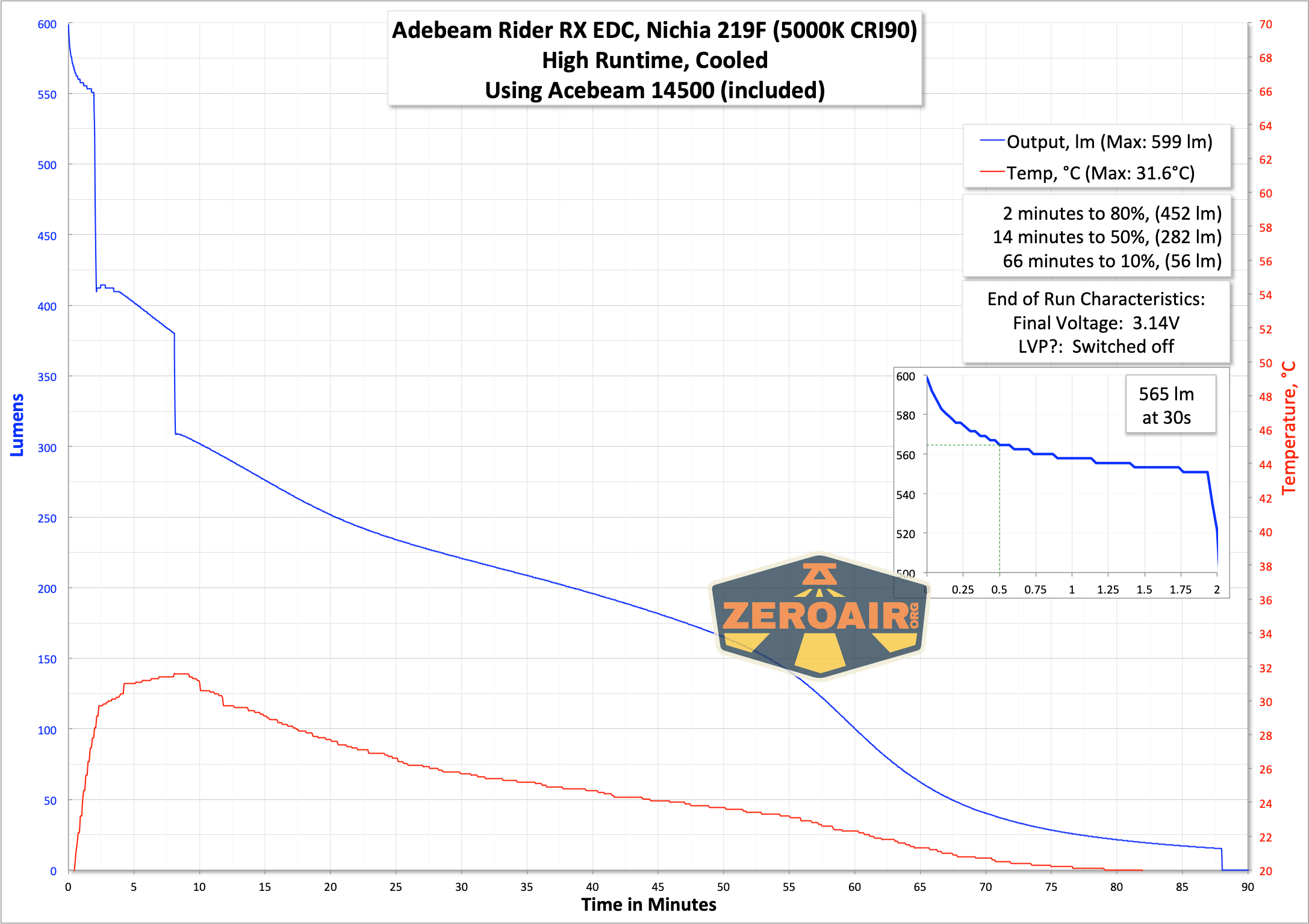 Performance with the 14500 cell is good, and there seems to be reliable low voltage protection.