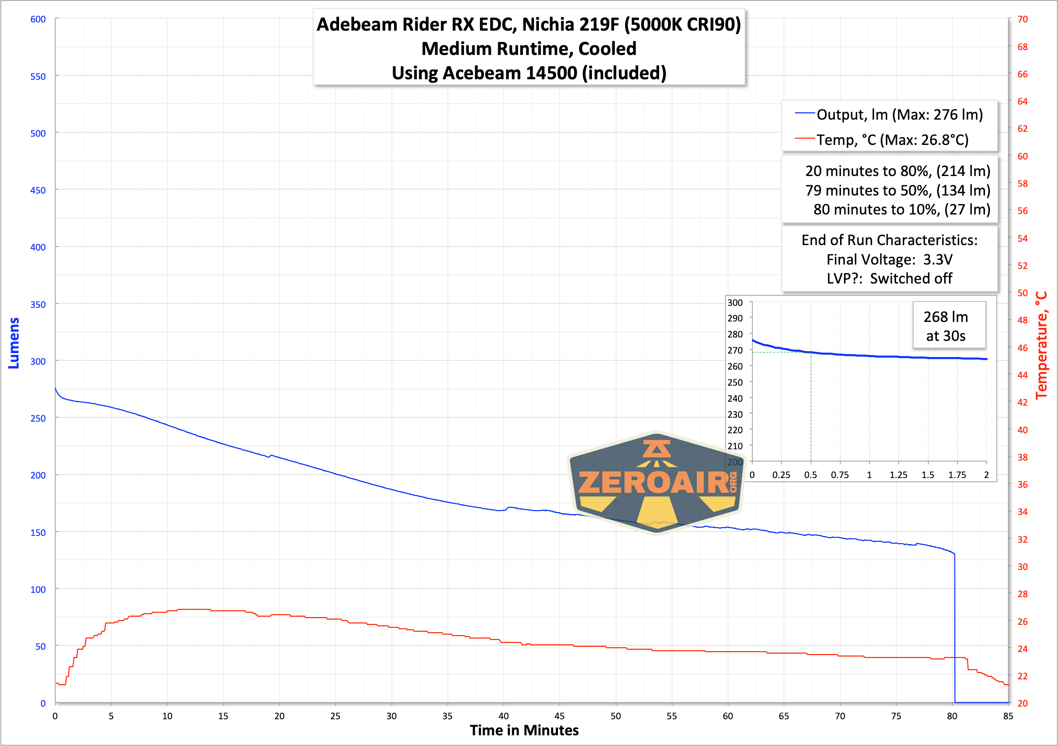 | Measured Lumens (at 30s) | 166 (83% of claim)^ |