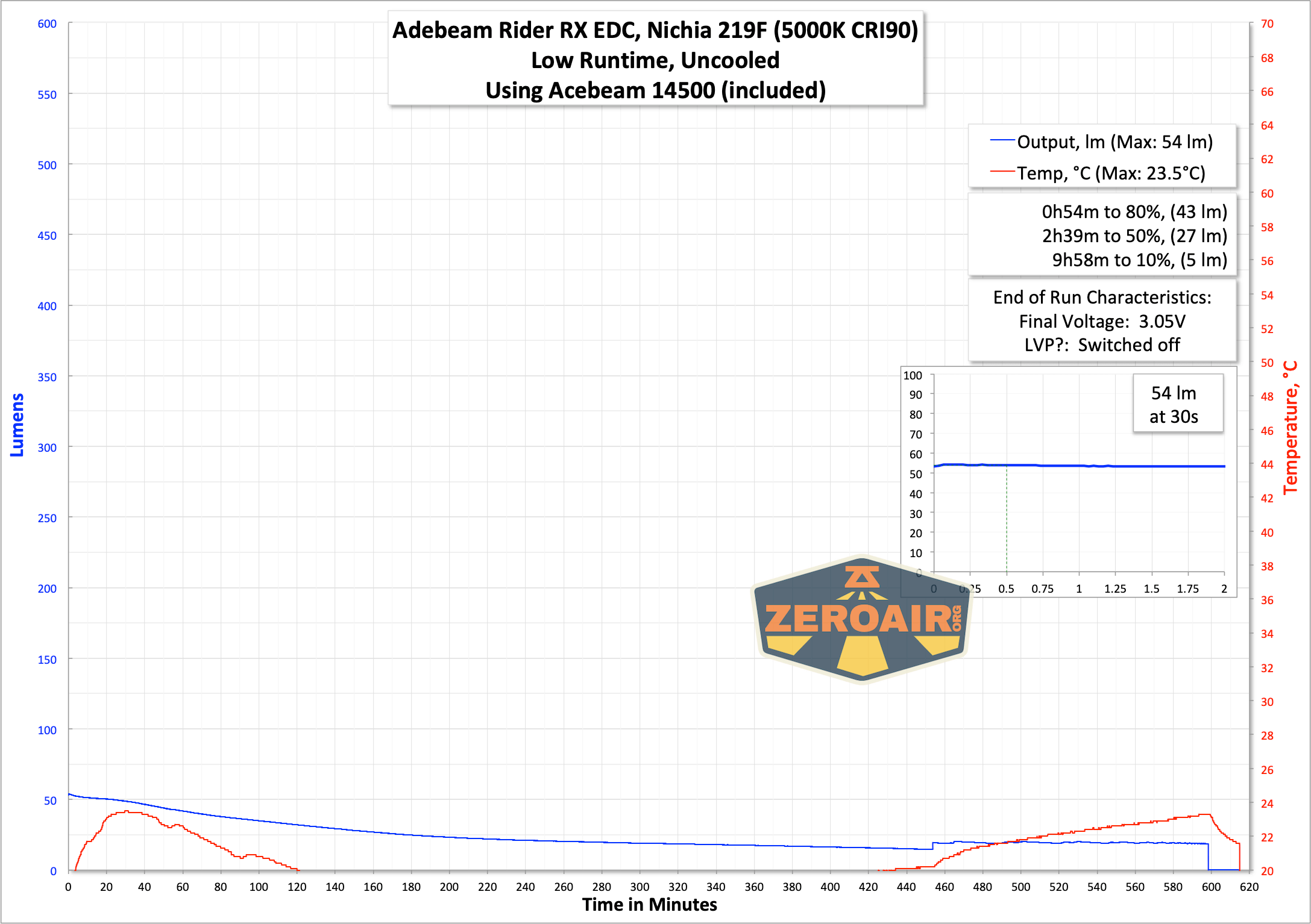 ^ Measurement disclaimer: Testing flashlights is my hobby. I use hobbyist-level equipment for testing, including some I made myself. Try not to get buried in the details of manufacturer specifications versus measurements recorded here; A certain amount of difference (say, 10 or 15%) is perfectly reasonable.