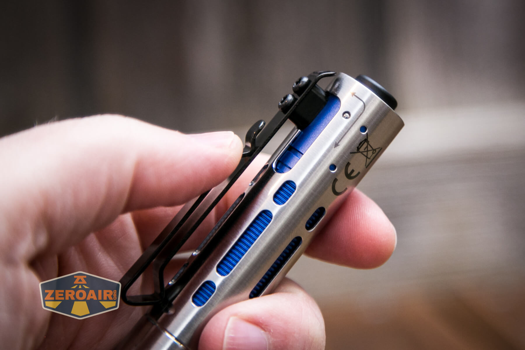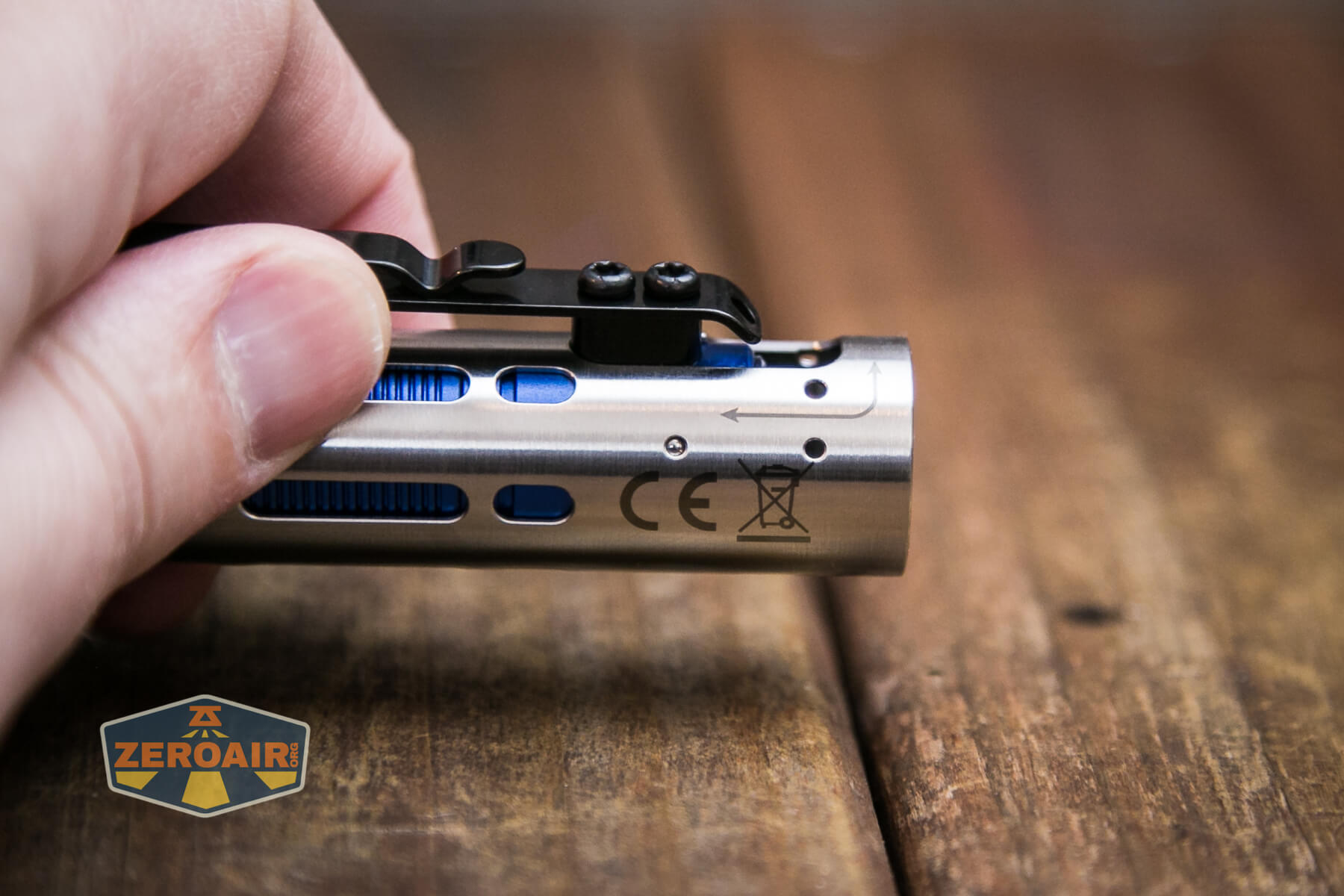 The pocket clip is the crux of the fidget factor on the Acebeam Rider RX flashlight and can be twisted around then pushed forward for use as a fidget toy.
