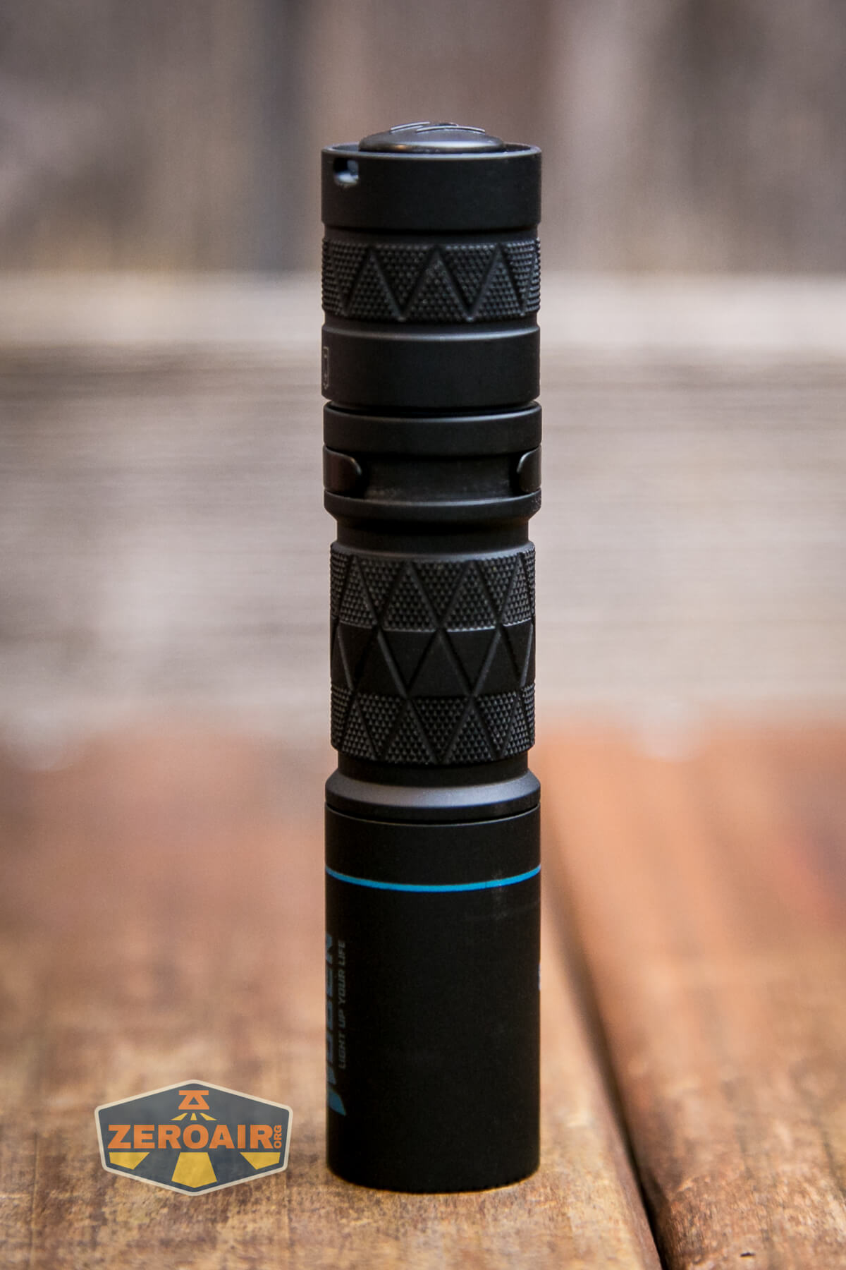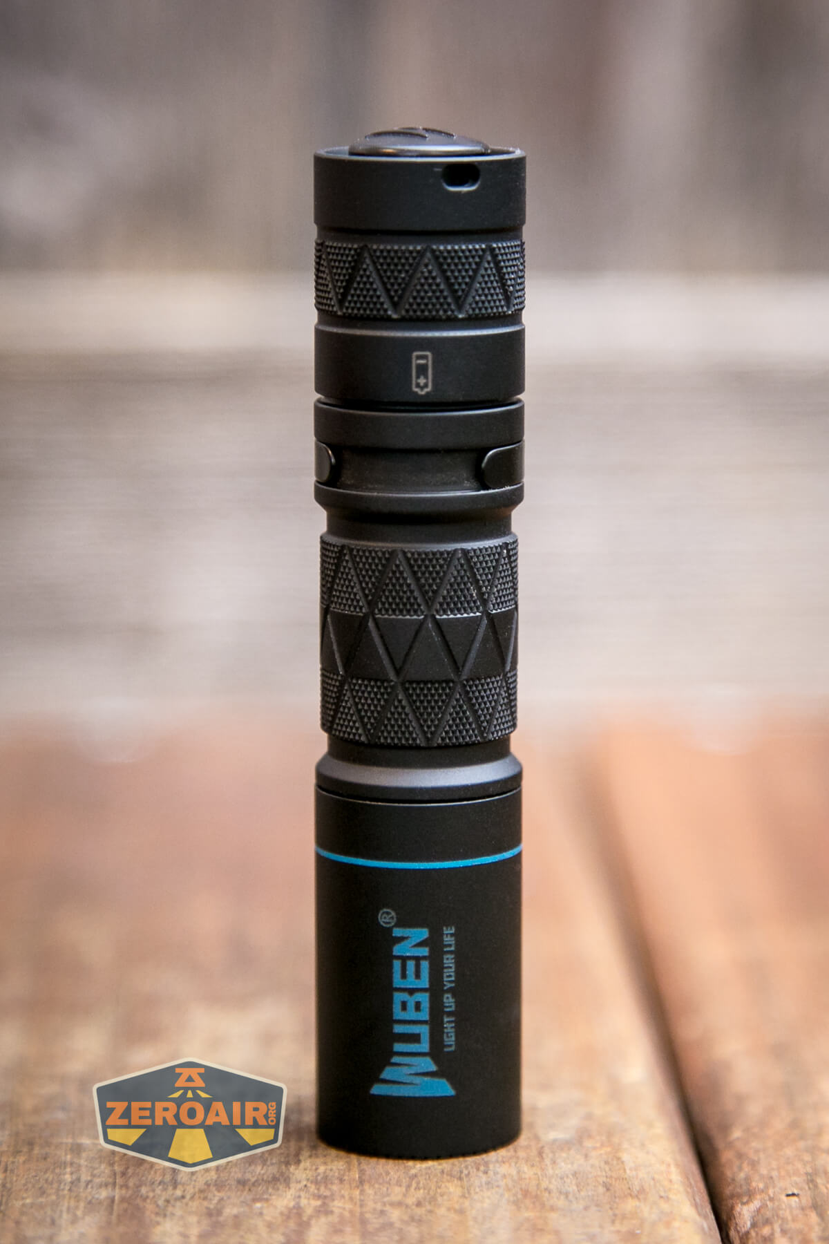 The Wuben E18 flashlight offers a Cree XP-G3 with a smooth reflector and a great switch. Check out the diamond knurling too!