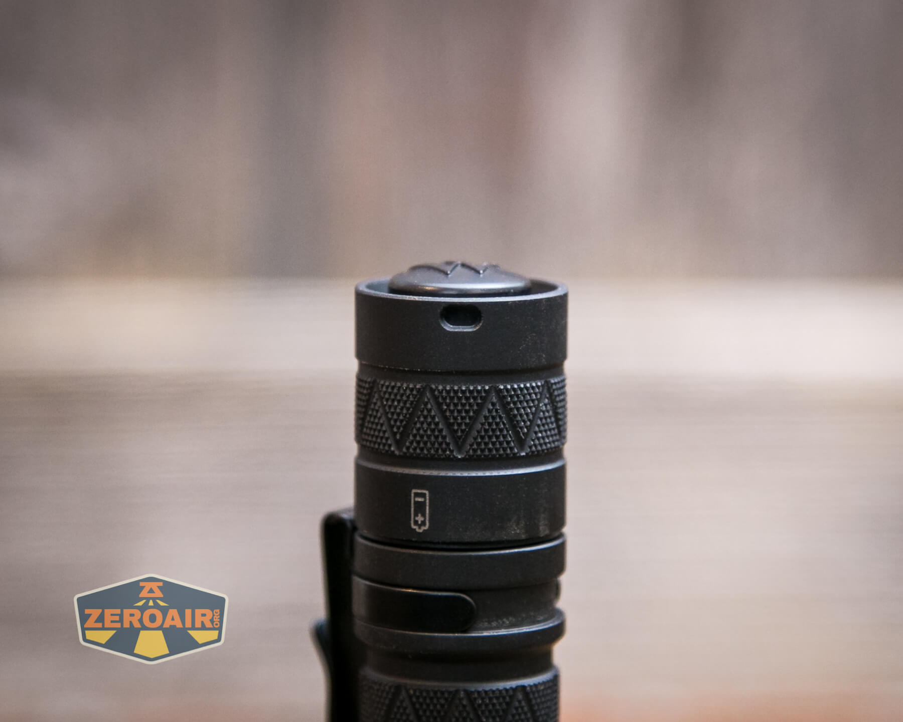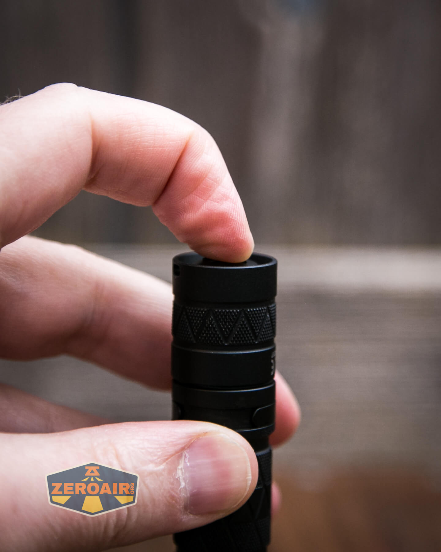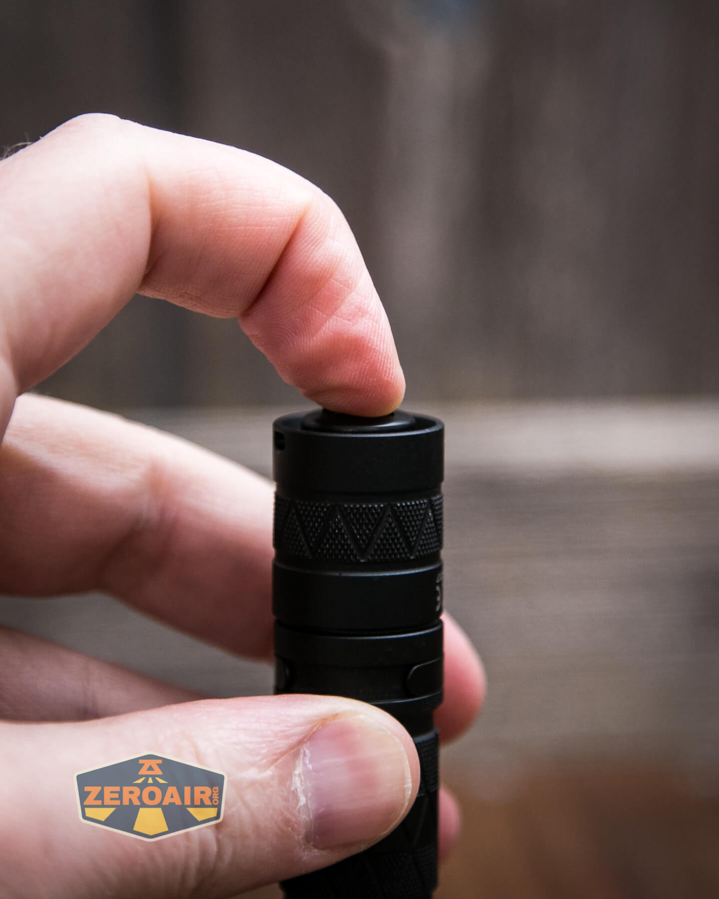 The tail switch here seems to be a mechanical clicky. It’s a reverse clicky, too, so mode changes are possible when the light is on.