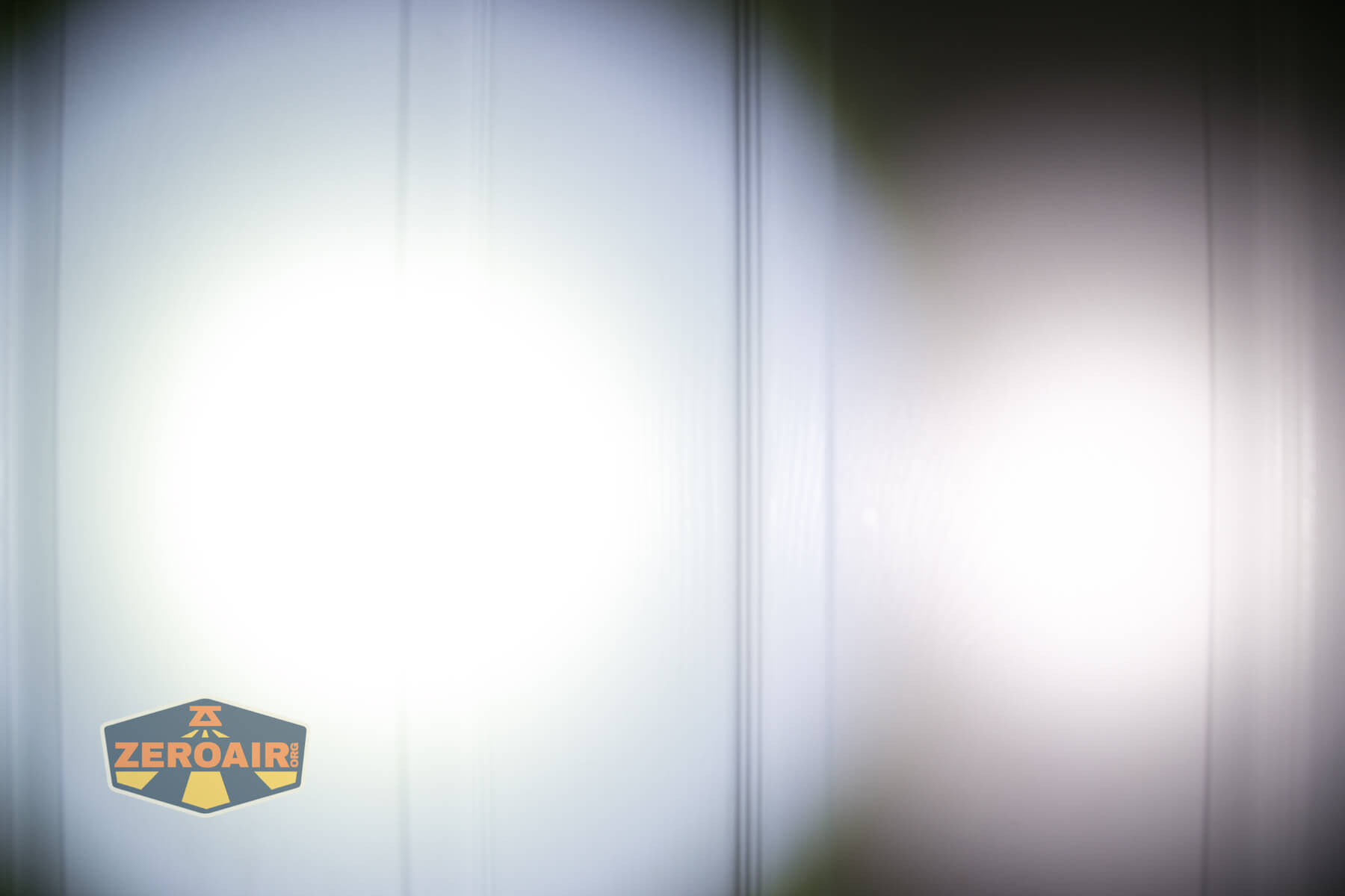 Here’s the test light with the venerable Convoy S2+. Mine is a custom “baked” edition Nichia 219b triple. A very nice 18650 light!