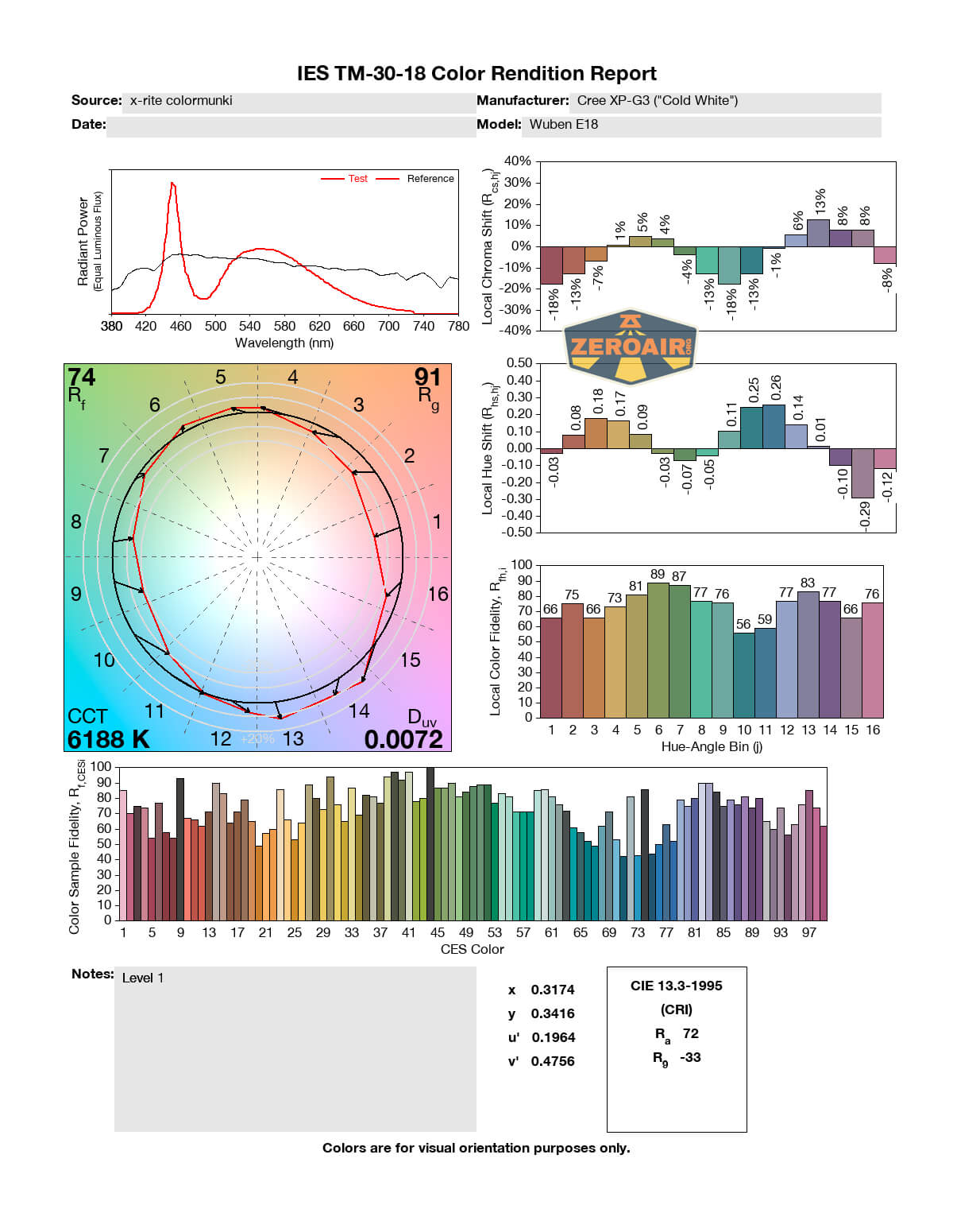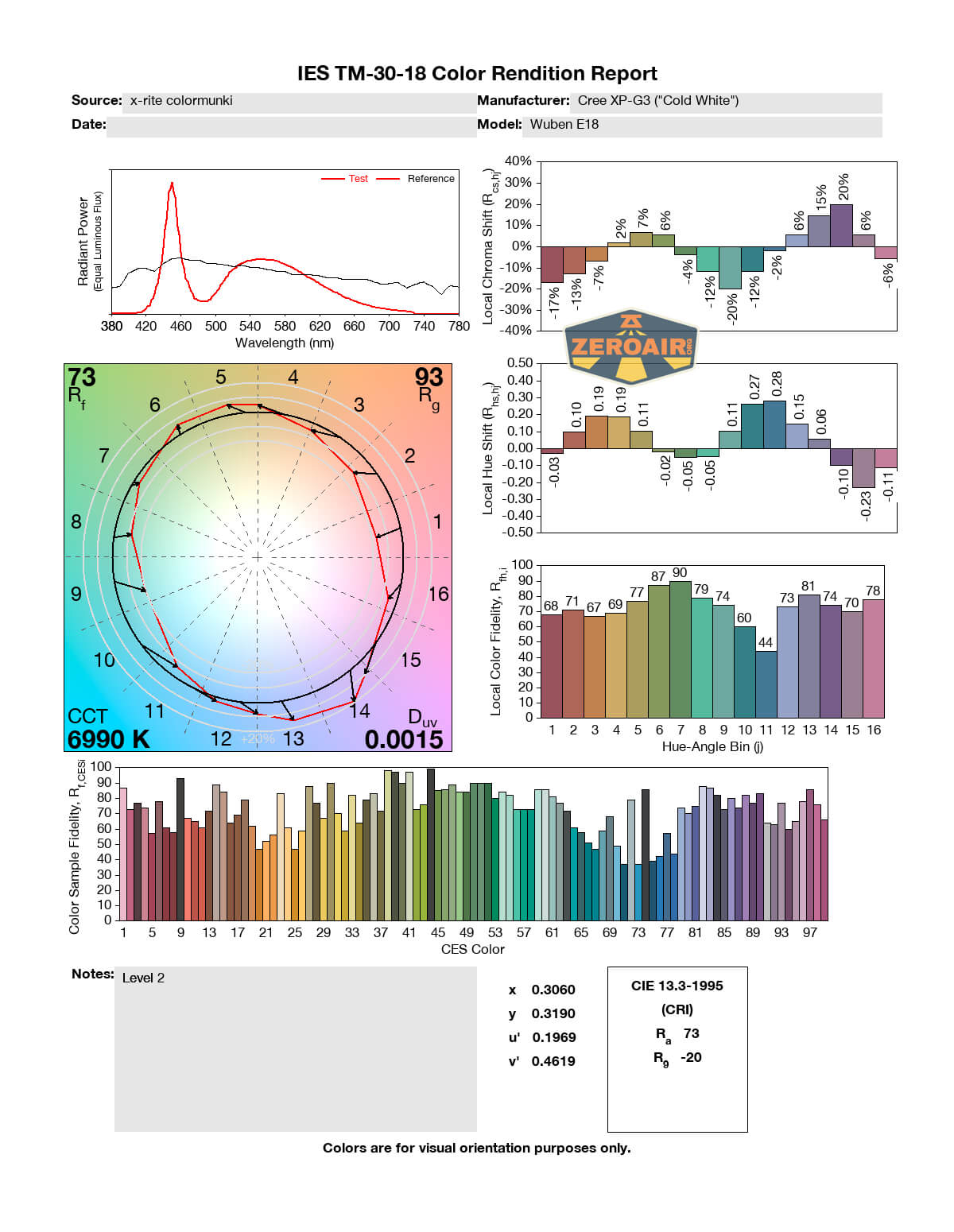 As the output gets higher, so does the CCT. That’s not great, especially since we’re seeing around 7400K by the highest level. CRI is not surprisingly fairly low.