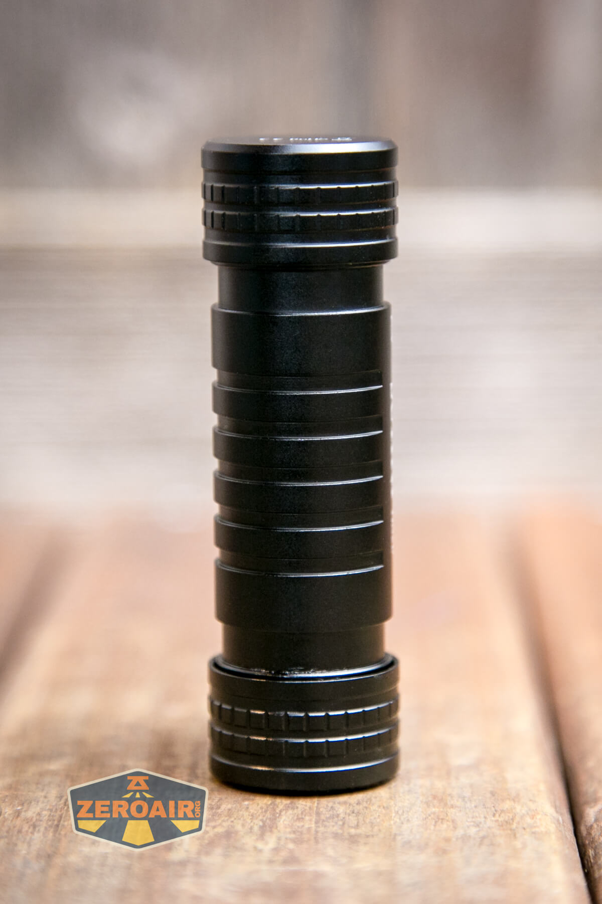 If the flashlight will headstand, I’ll show it here (usually the third photo). If the flashlight will tailstand, I’ll show that here, too (usually the fourth photo).