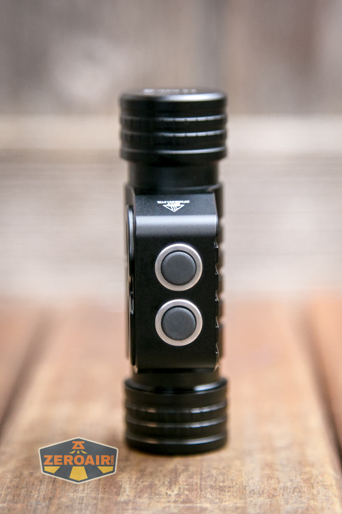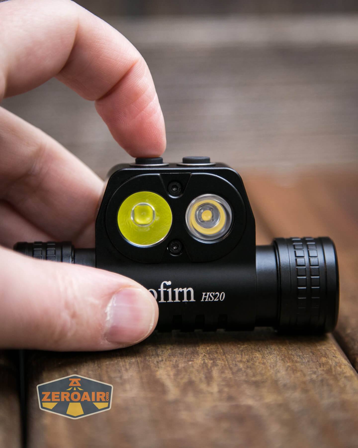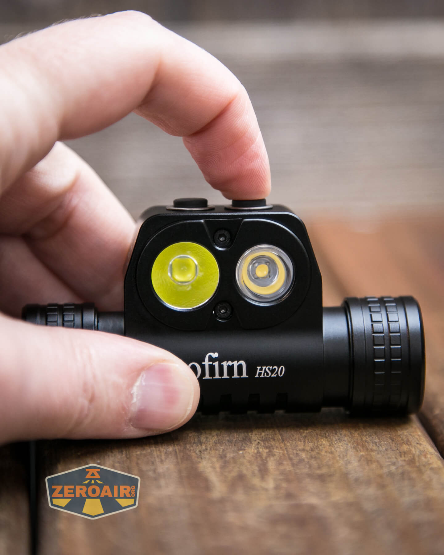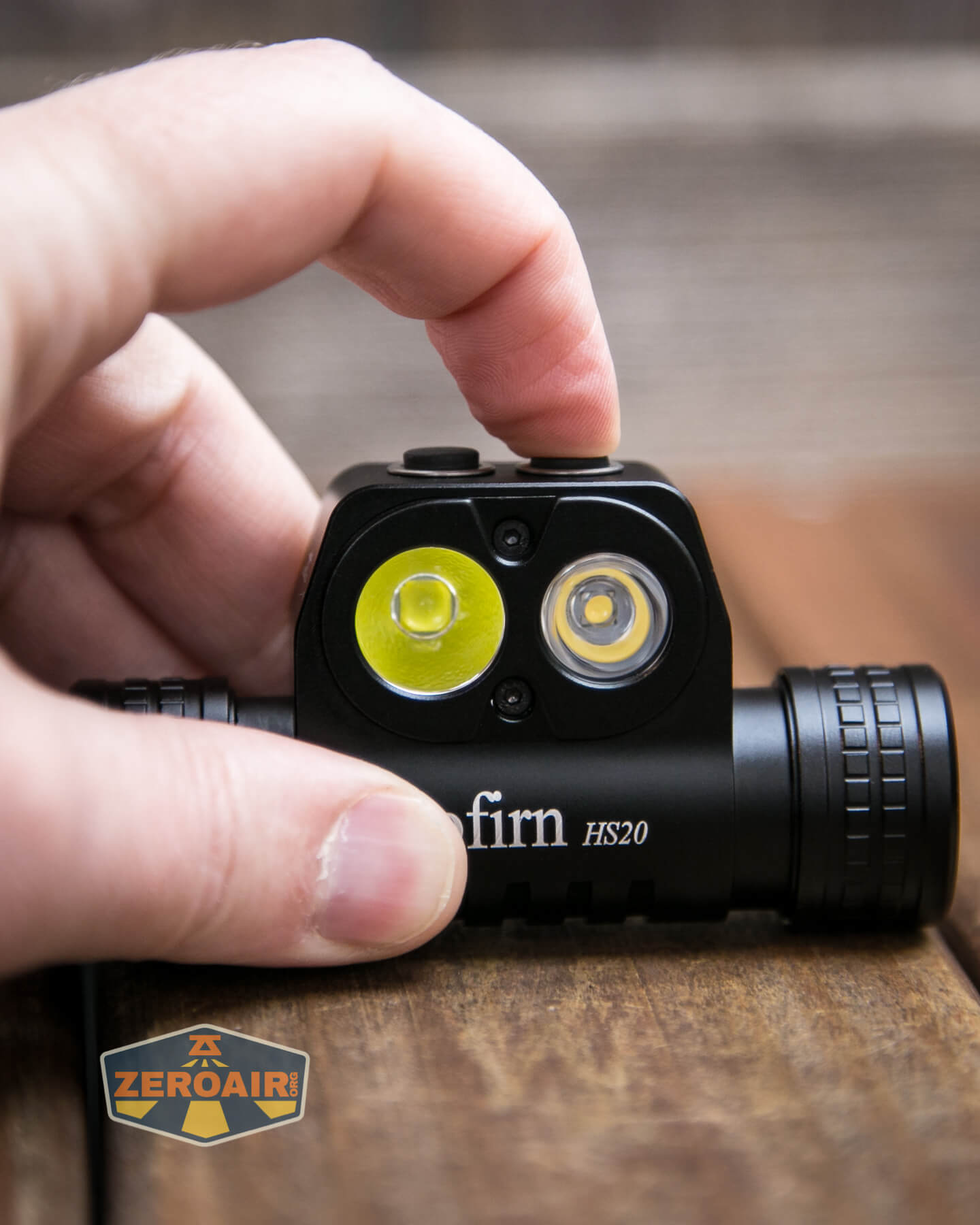 There are two switches on the top of the Sofirn HS20 headlamp. These switches correspond to the emitter below, and essentially, they make this HS20 two separate flashlights in one. The user interface is the same for each switch (as far as I can tell, more on that later), and the lights can be operated independently.
