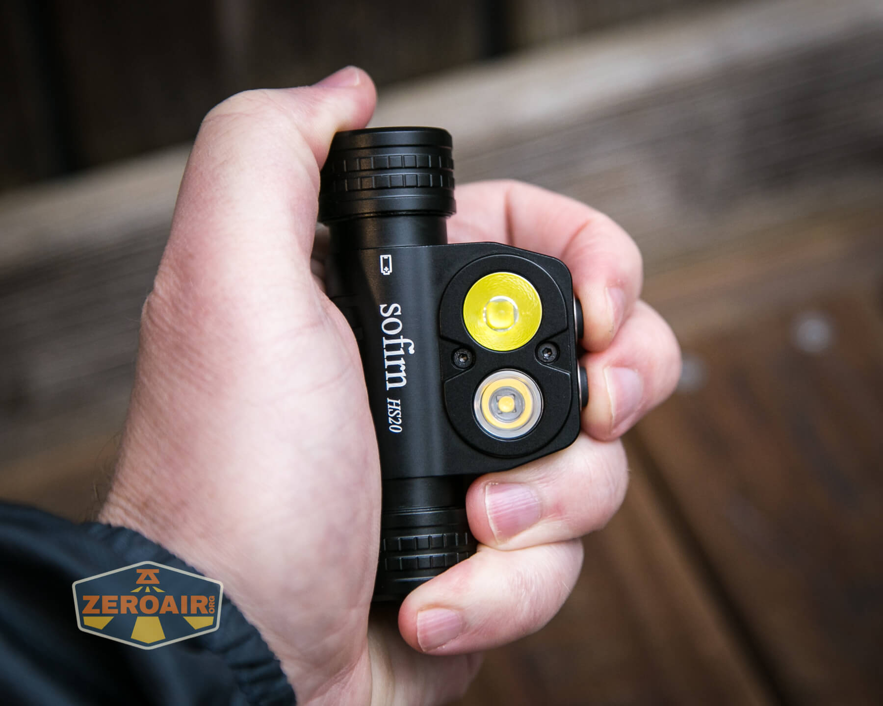 There’s no other way to carry the Sofirn HS20 headlamp. I was surprised to note that neither tailcap has a magnet. Maybe that wouldn’t add any usefulness, but I seemed to find myself wanting that feature frequently with this light. (But that’s a “during testing” wish, not a “during usage” wish. To be fair.)