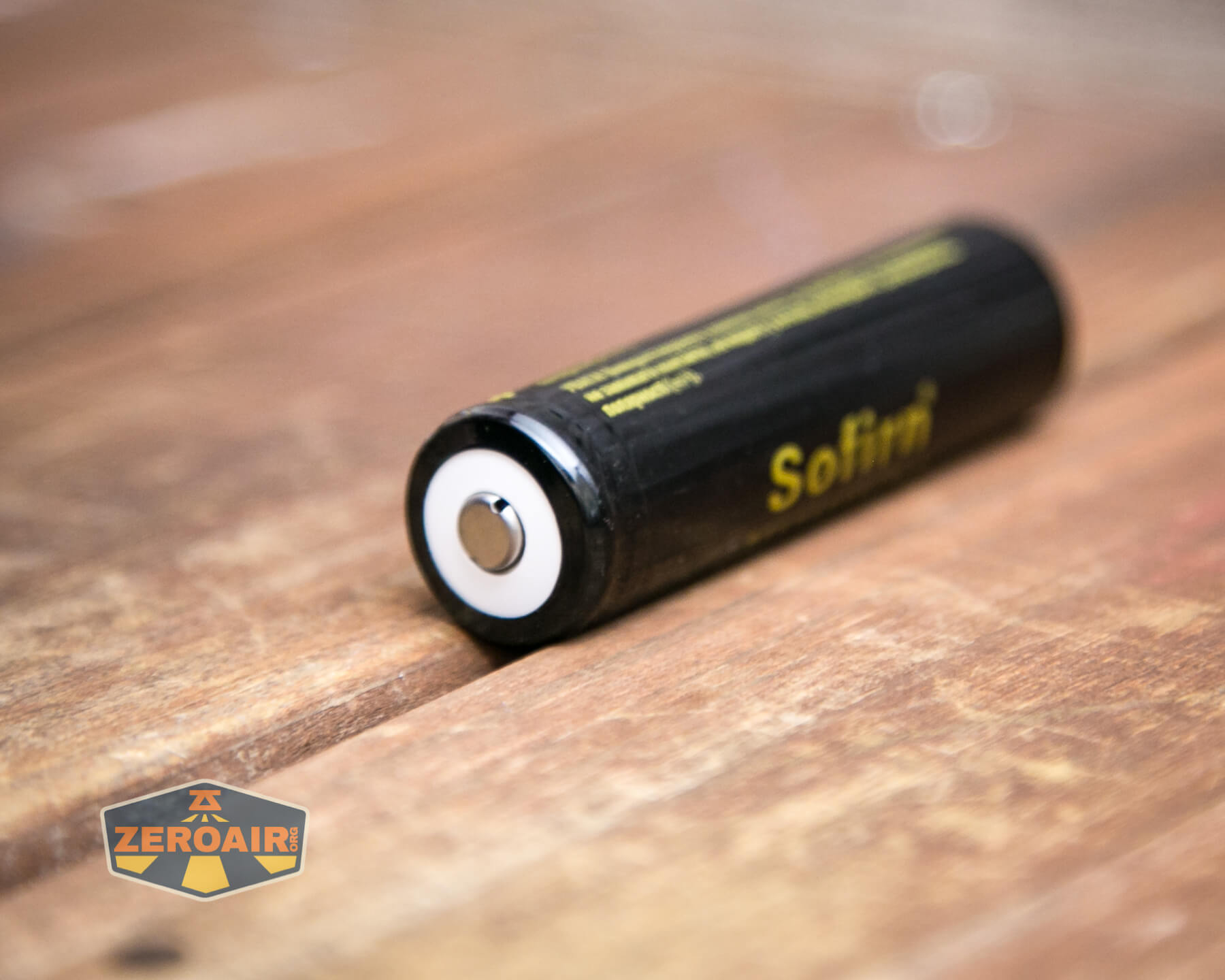 The Sofirn HS20 headlamp operates on a single lithium-ion cell. I have a package that had a cell included. It’s a 3000mAh button top and is a completely standard cell.