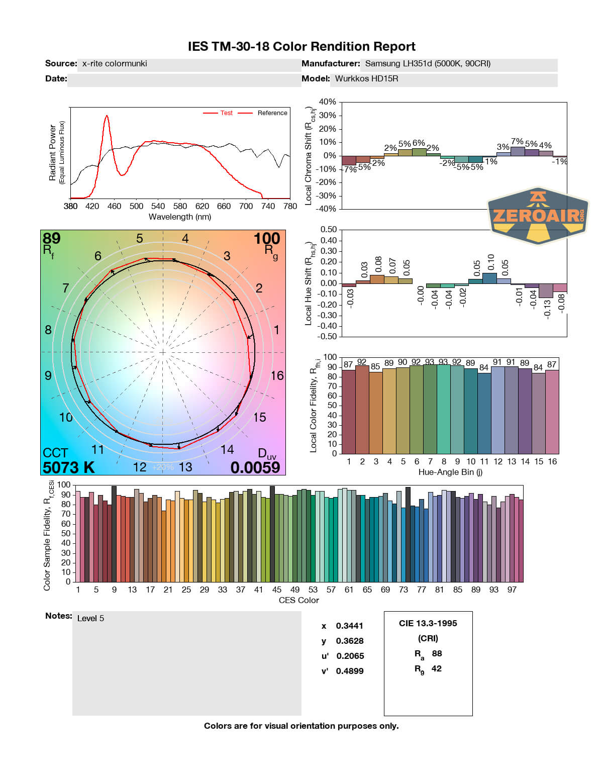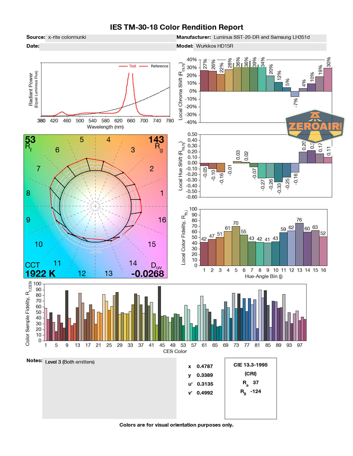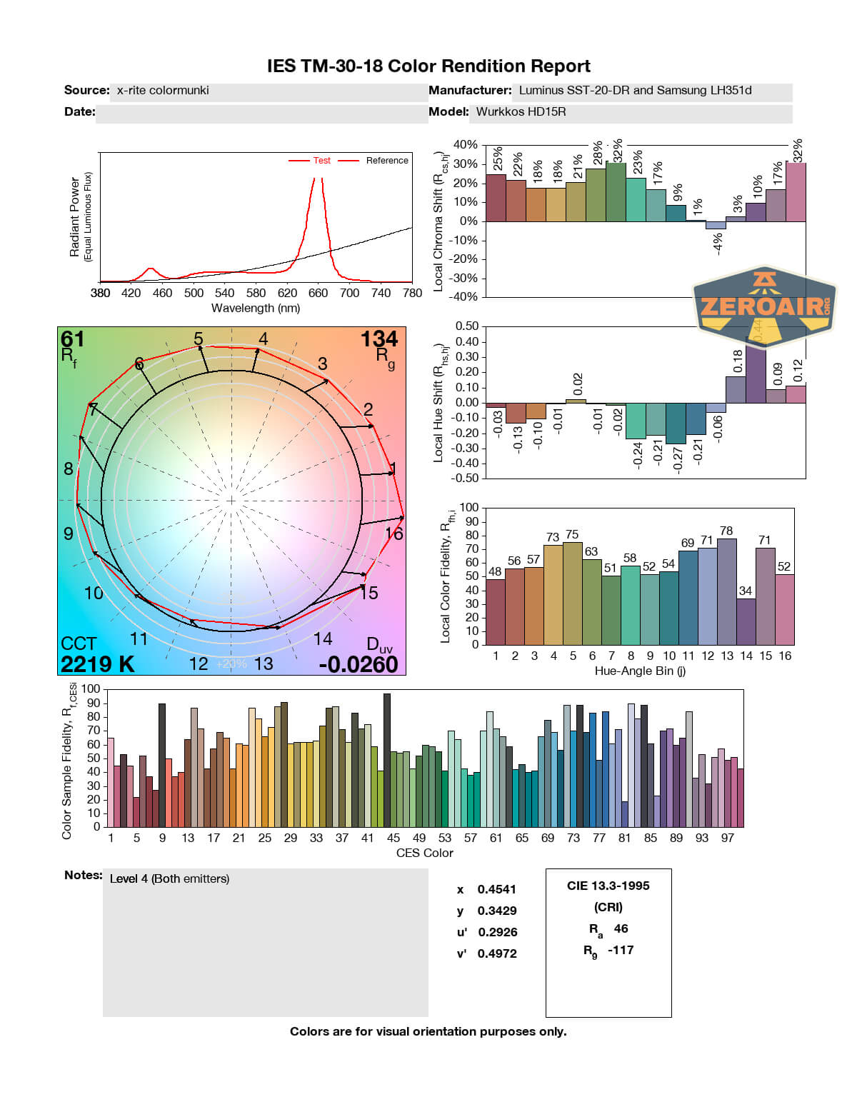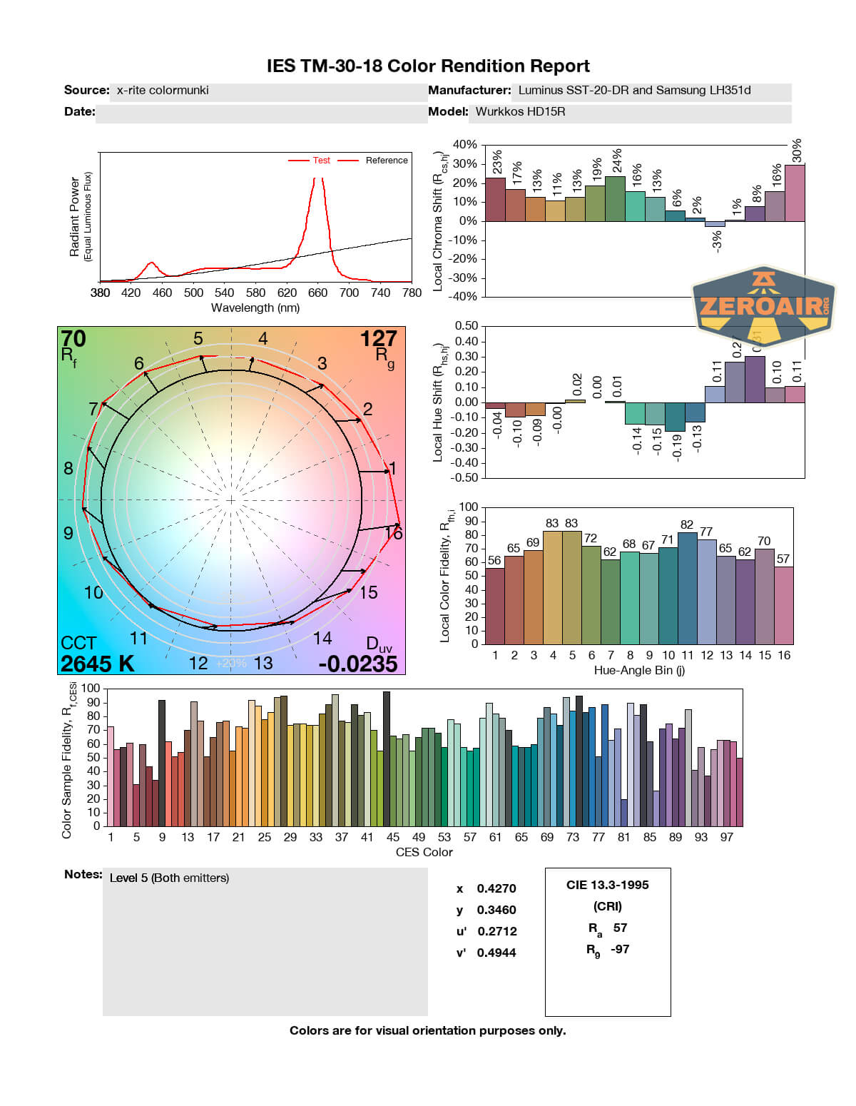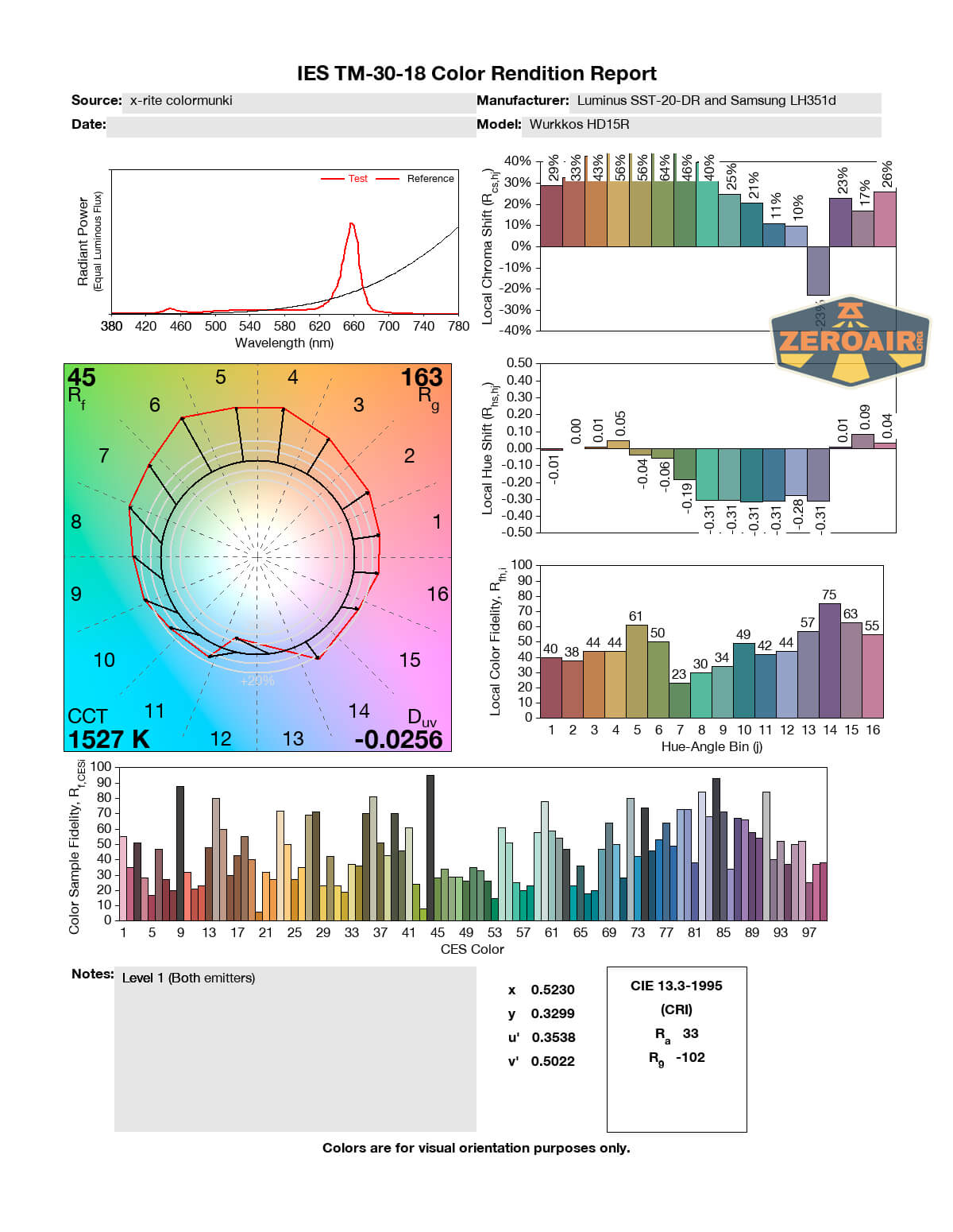 In fact, the red here is so deep that it saturates the sensor, and so this is just a best approximation of the report. By that I mean I held the light far enough away that the sensor would accept the input, and this is the result.