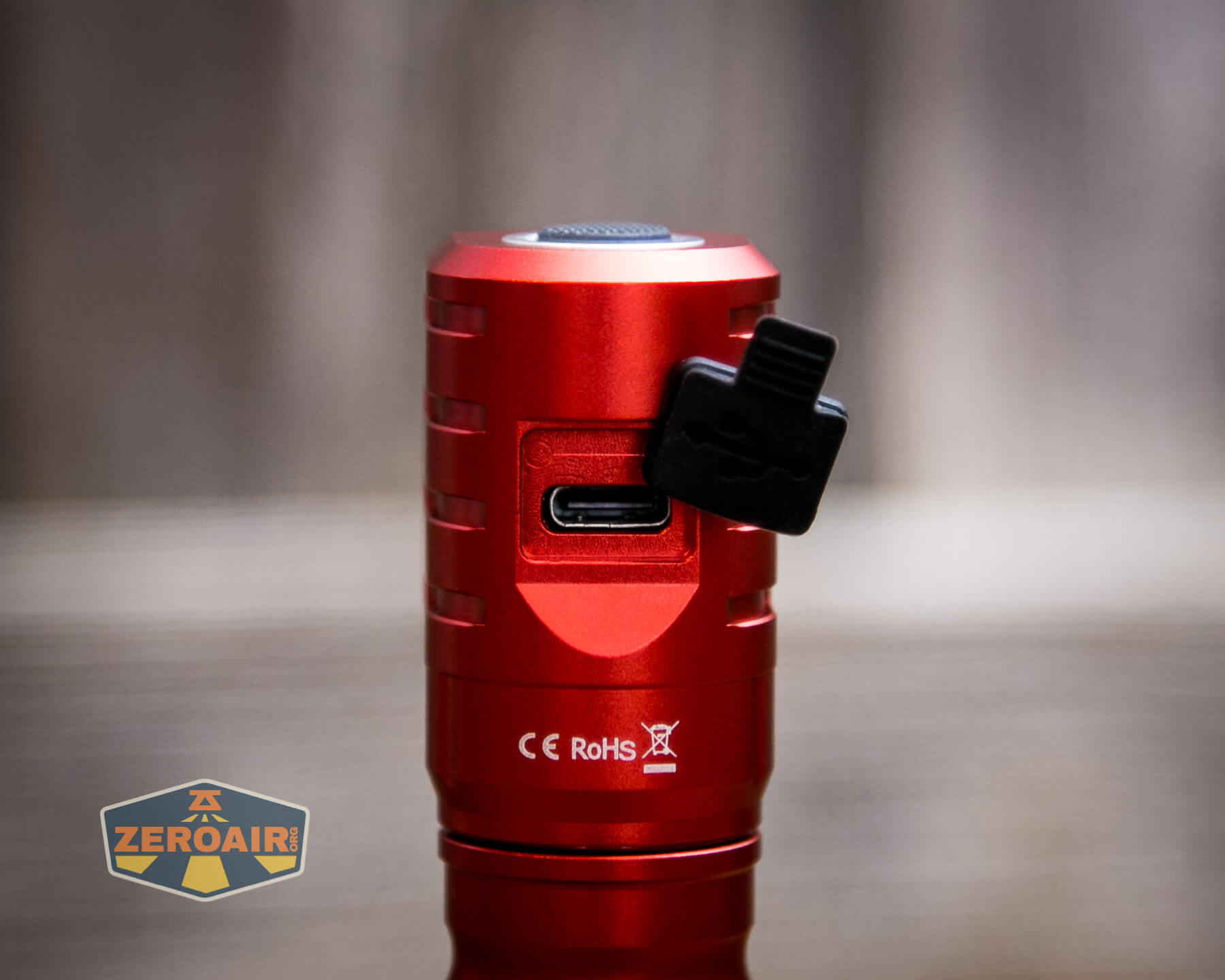 Another feature of the Wurkkos HD15R headlamp is built-in charging. There’s a USB-C port in the head, which has a press-in cover. This cover is quite thick, and when installed properly, very secure. It has a thick edge and must be deliberately pushed into the opening.