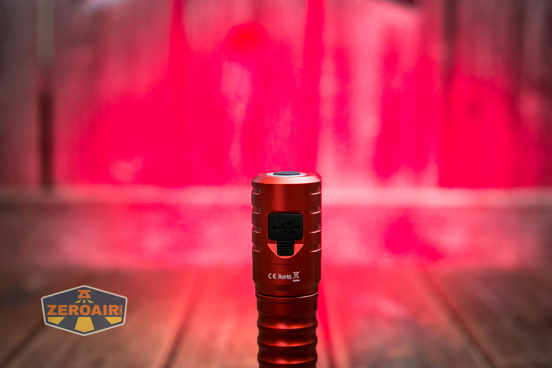 The body is red, which is great. But this red emitter – a deep red Luminus SST-20 is absolutely red. The “Deep” part of the red is so accurate. So red. There’s so much redness to the red. Otherwise, the light as a whole is fantastic. I would probably opt for a more throwy white emitter, but I do understand that isn’t really the role this light fits. Build quality is great. The package is great. The price is also great!