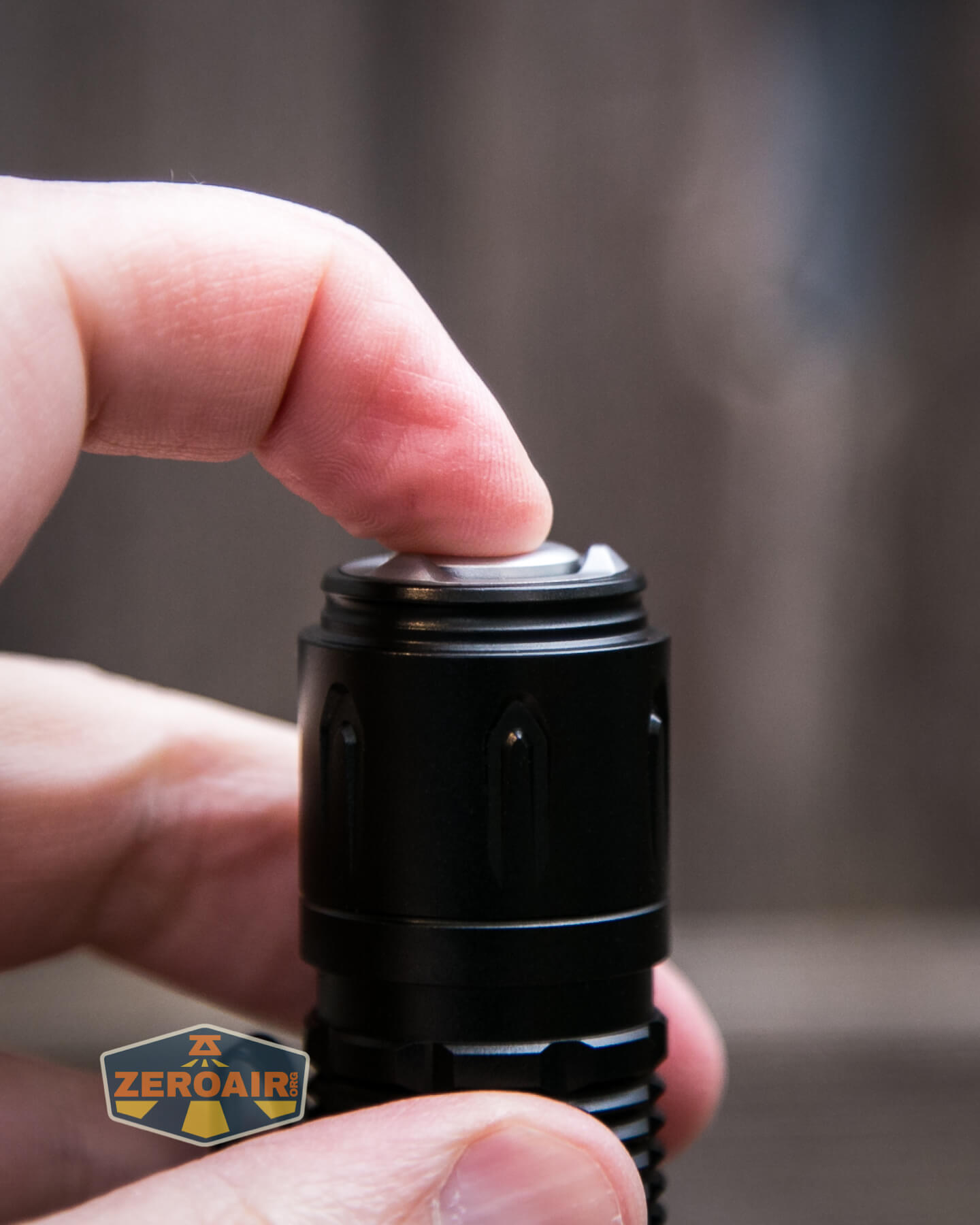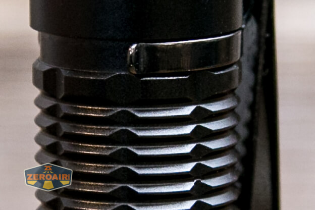 We still have the fairly standard tailcap setup here from Olight. The threads are so smooth, too. Just over 6 full turns are required for tightening the tailcap – quite long threads.
